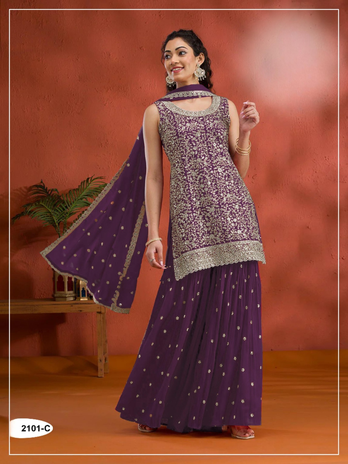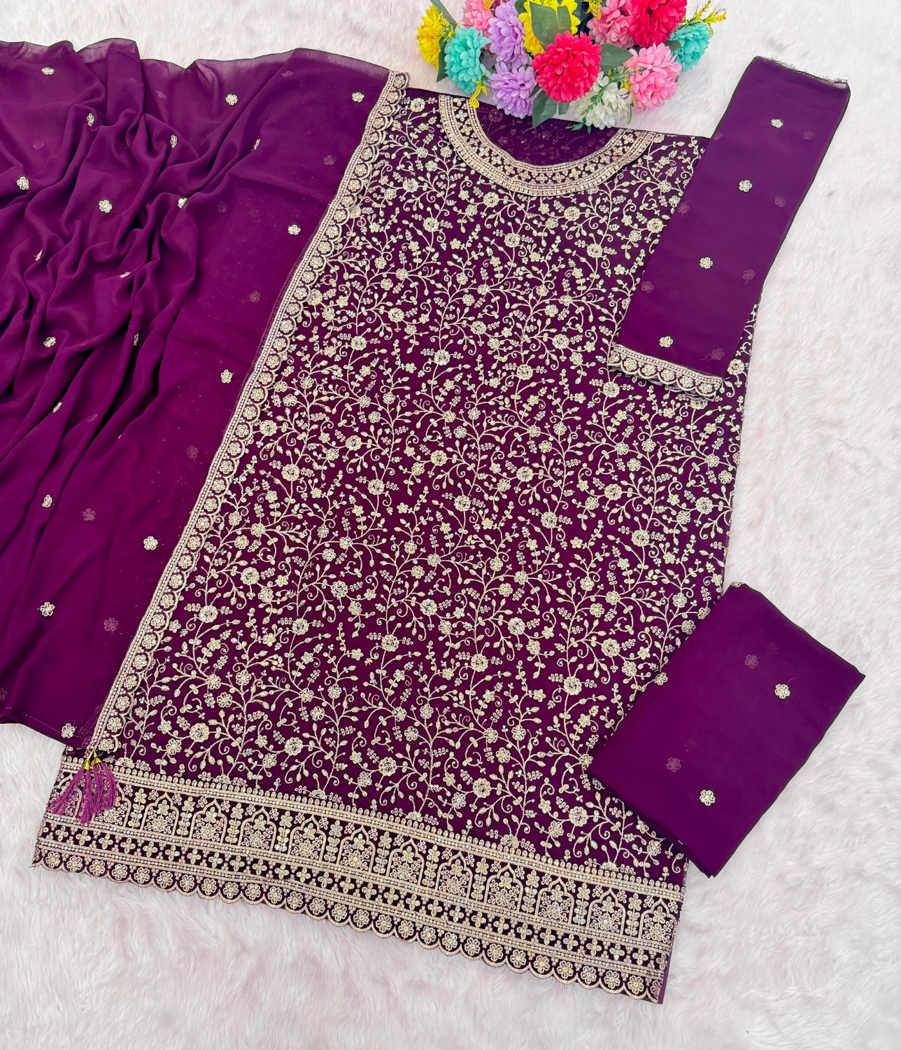 Purple Blooming Georgette Semi Stitched suit with Heavy Embroidery & Sequence work
