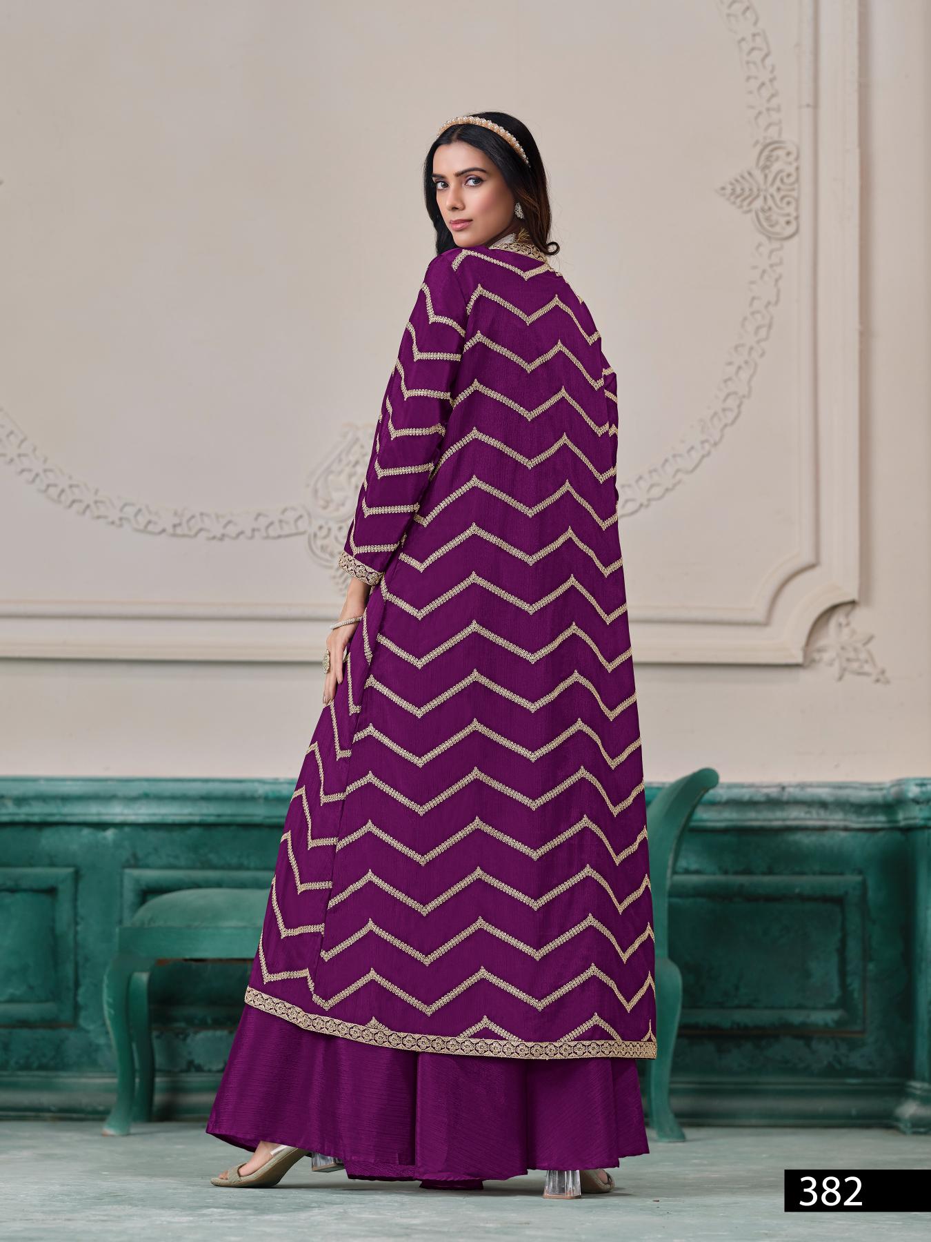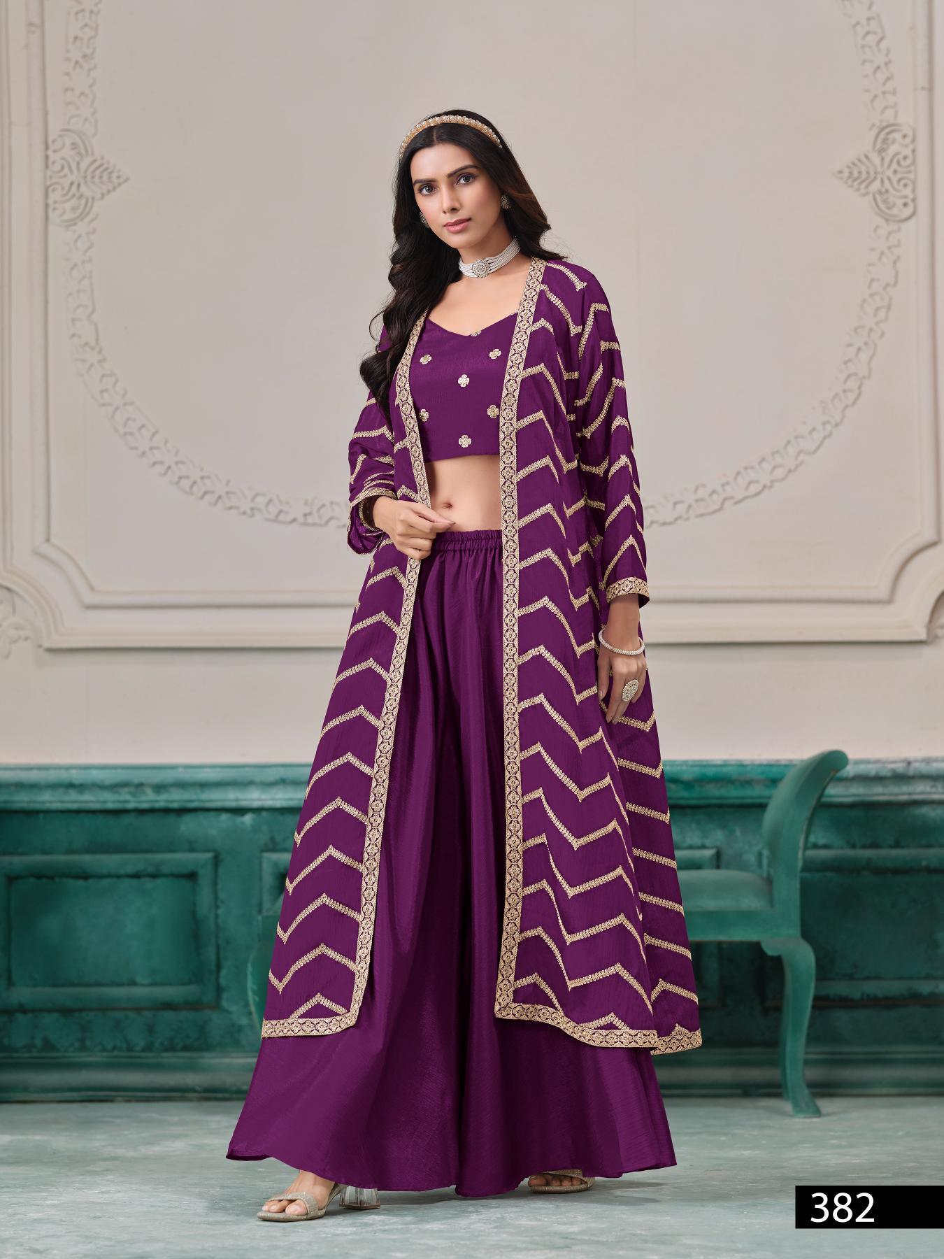 Purple Chinon Designer Free Size Stitched Indo Western