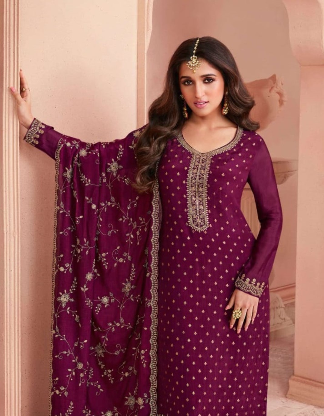 Purple Dola Jecard Silk Sequence Embroidered Semi-Stitched Salwar Suit