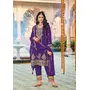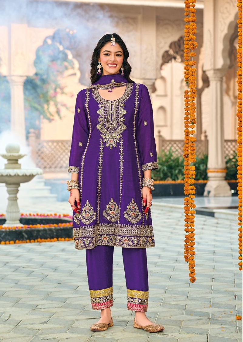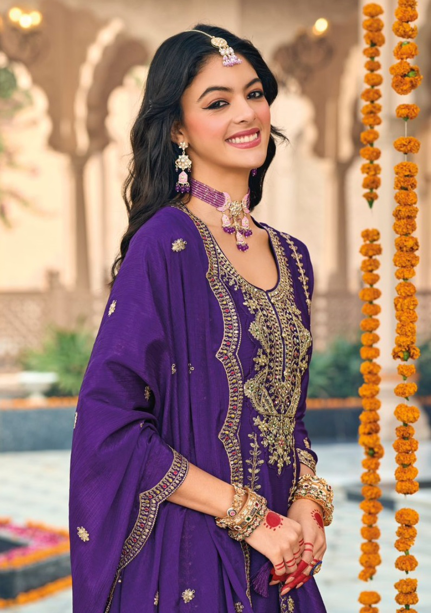 Purple embroidered Chinon Squence Work free Size stitched anarkali suit