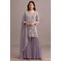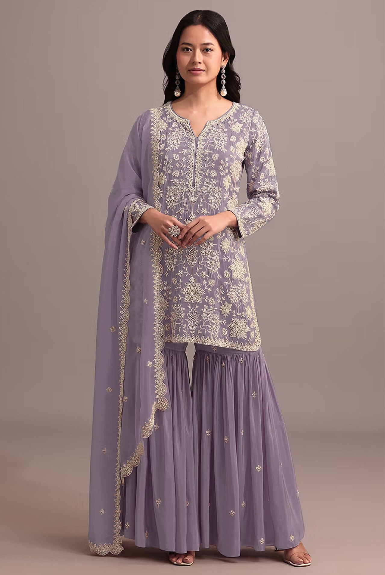 Purple Embroidered Faux Georgette Semi Stitched Sharara Suit