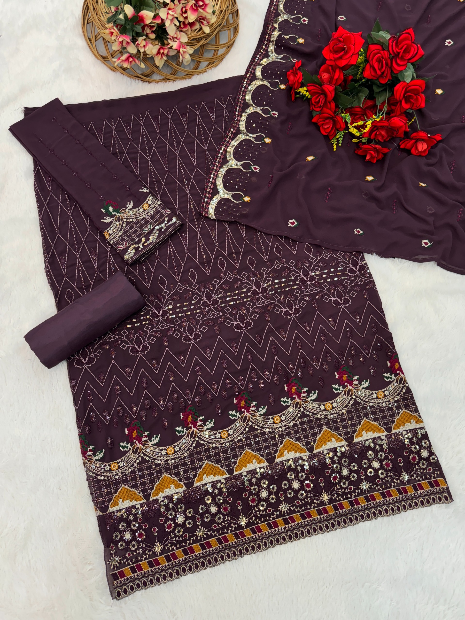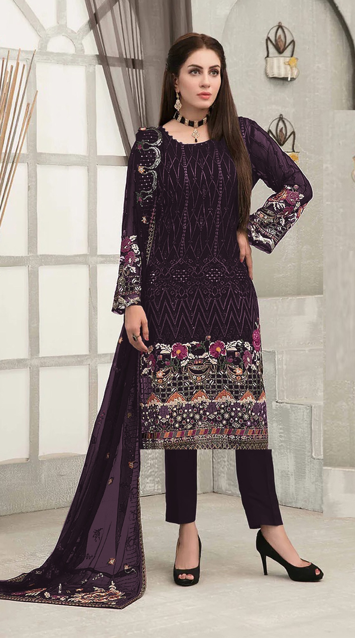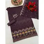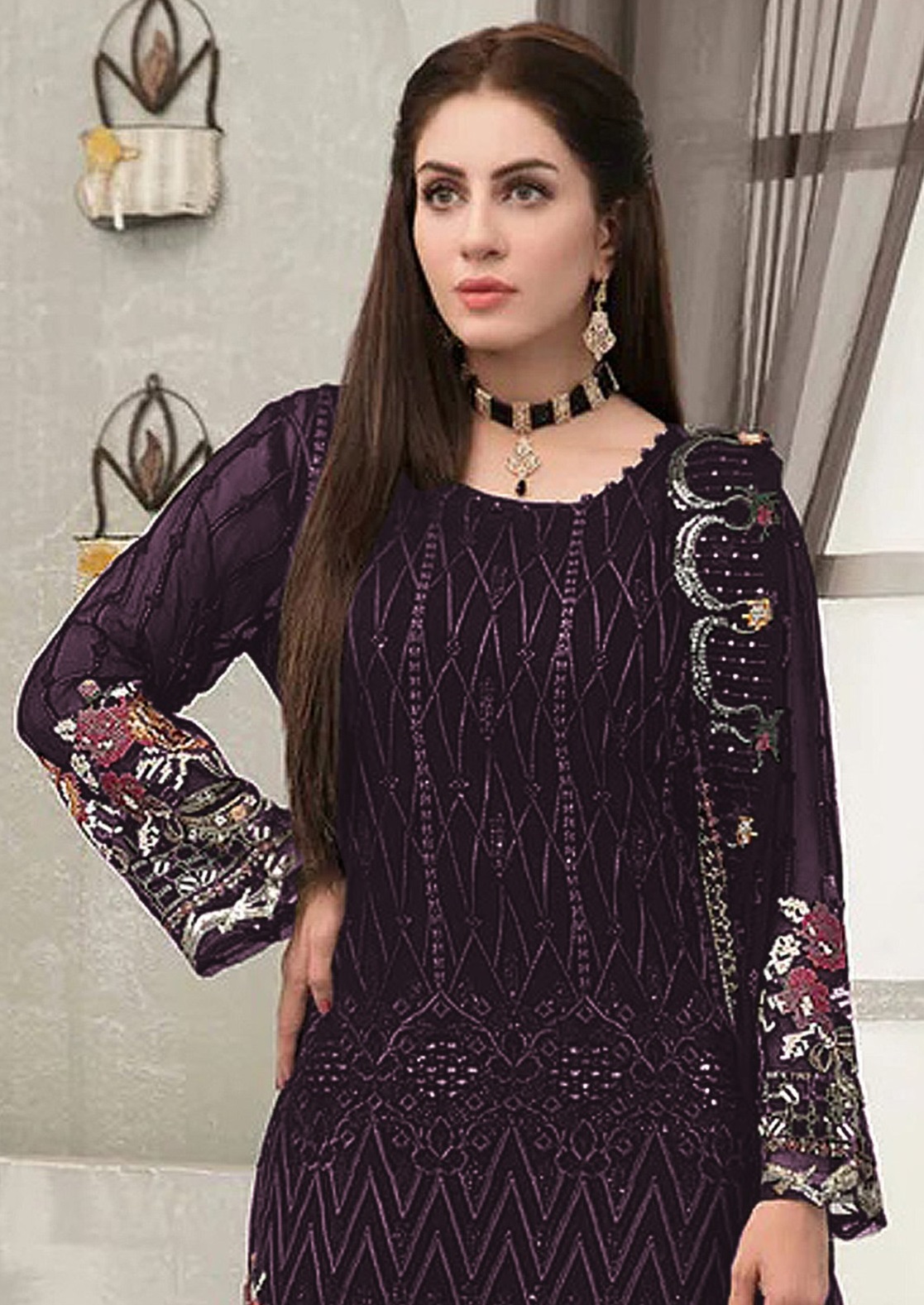 Purple Embroidered Faux Georgette Semi Stitched Sharara Suit