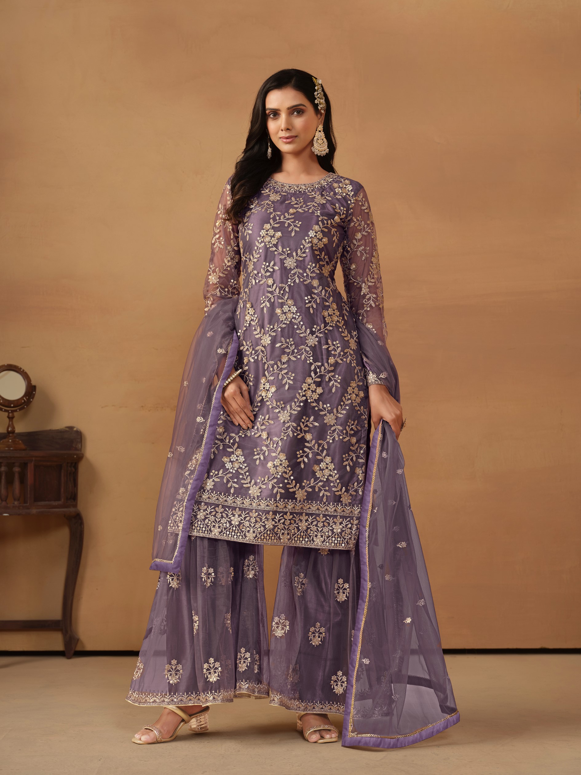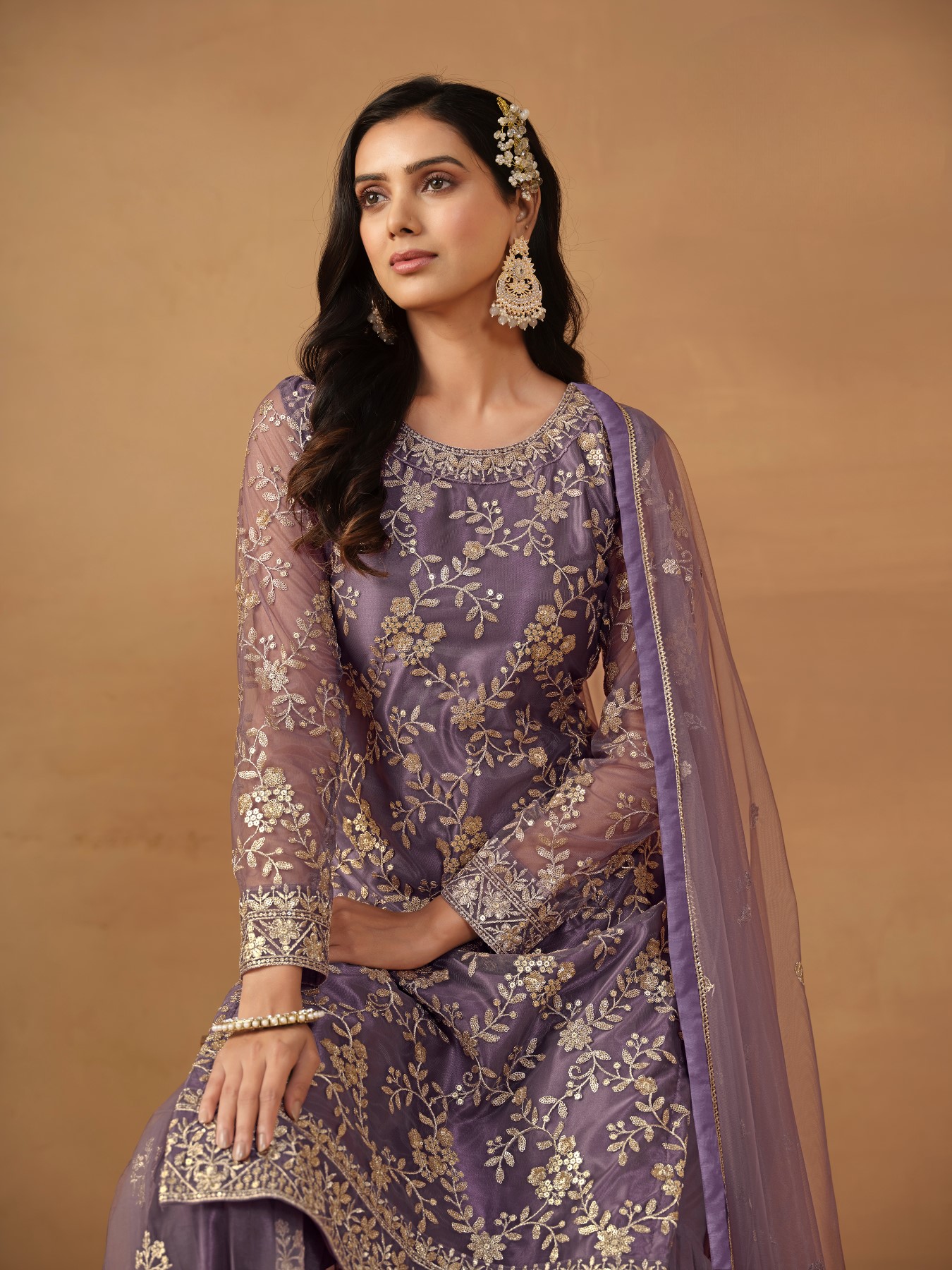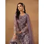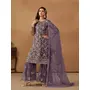 Purple Embroidered Net Semi Stitched Salwar Suit