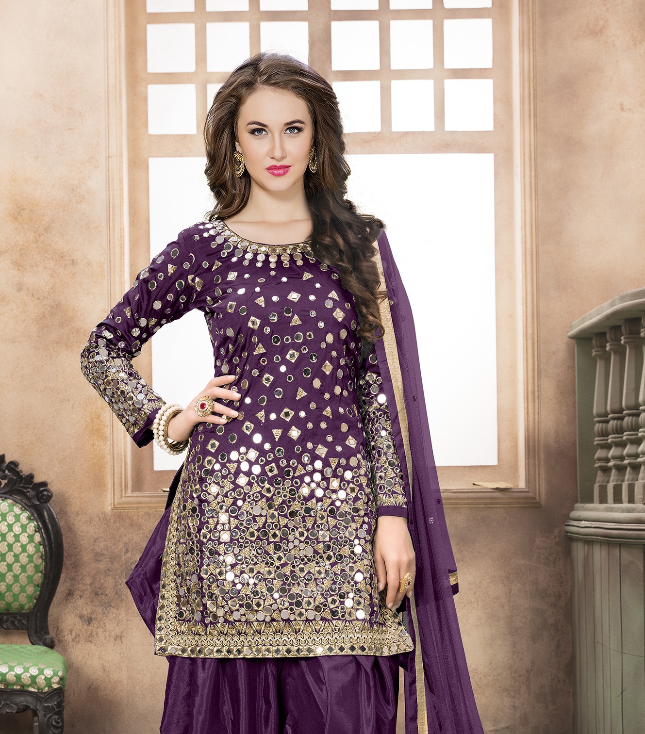 Purple Embroidered Tapeta Silk Semi Stitched Salwar Suit