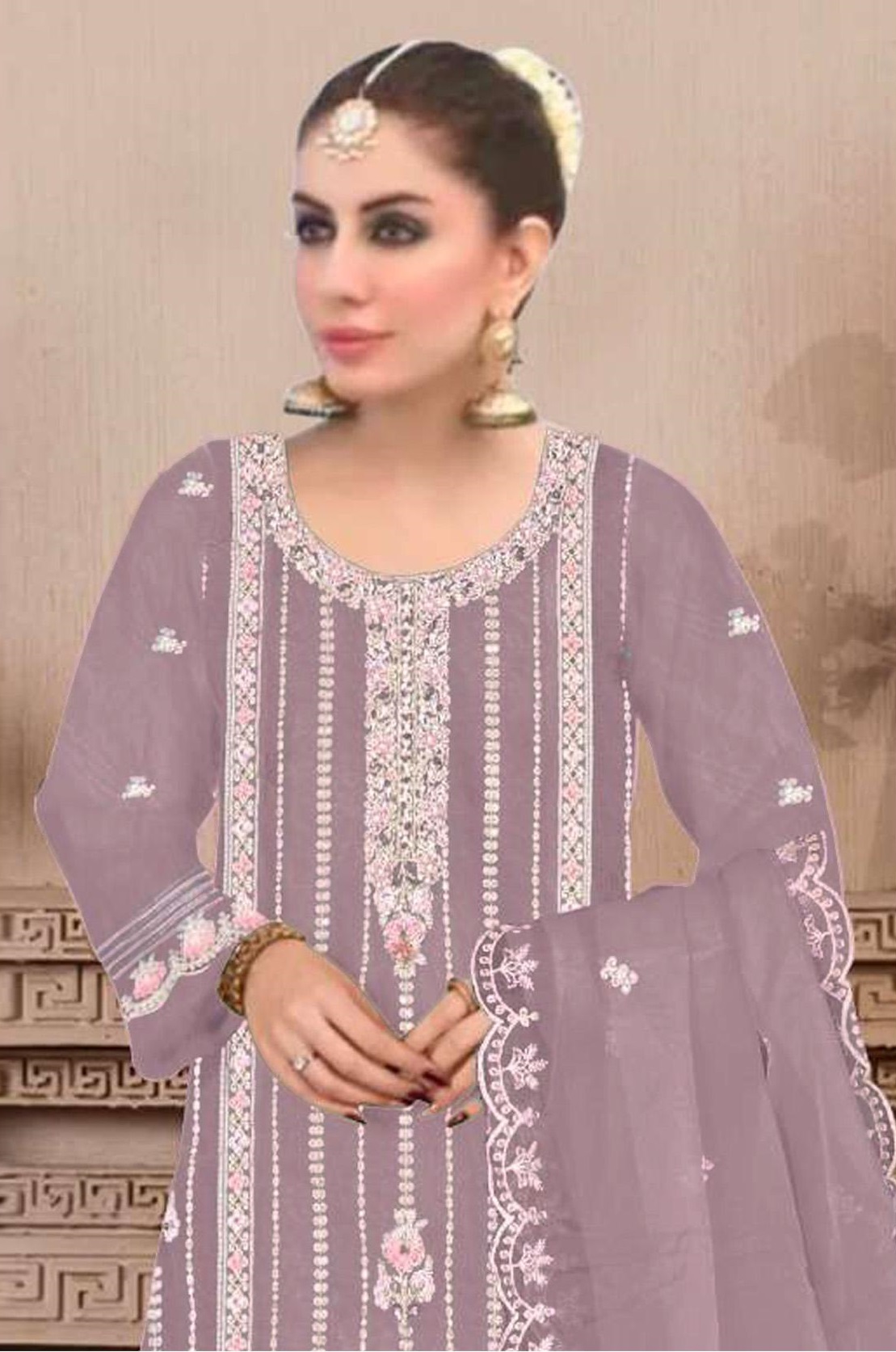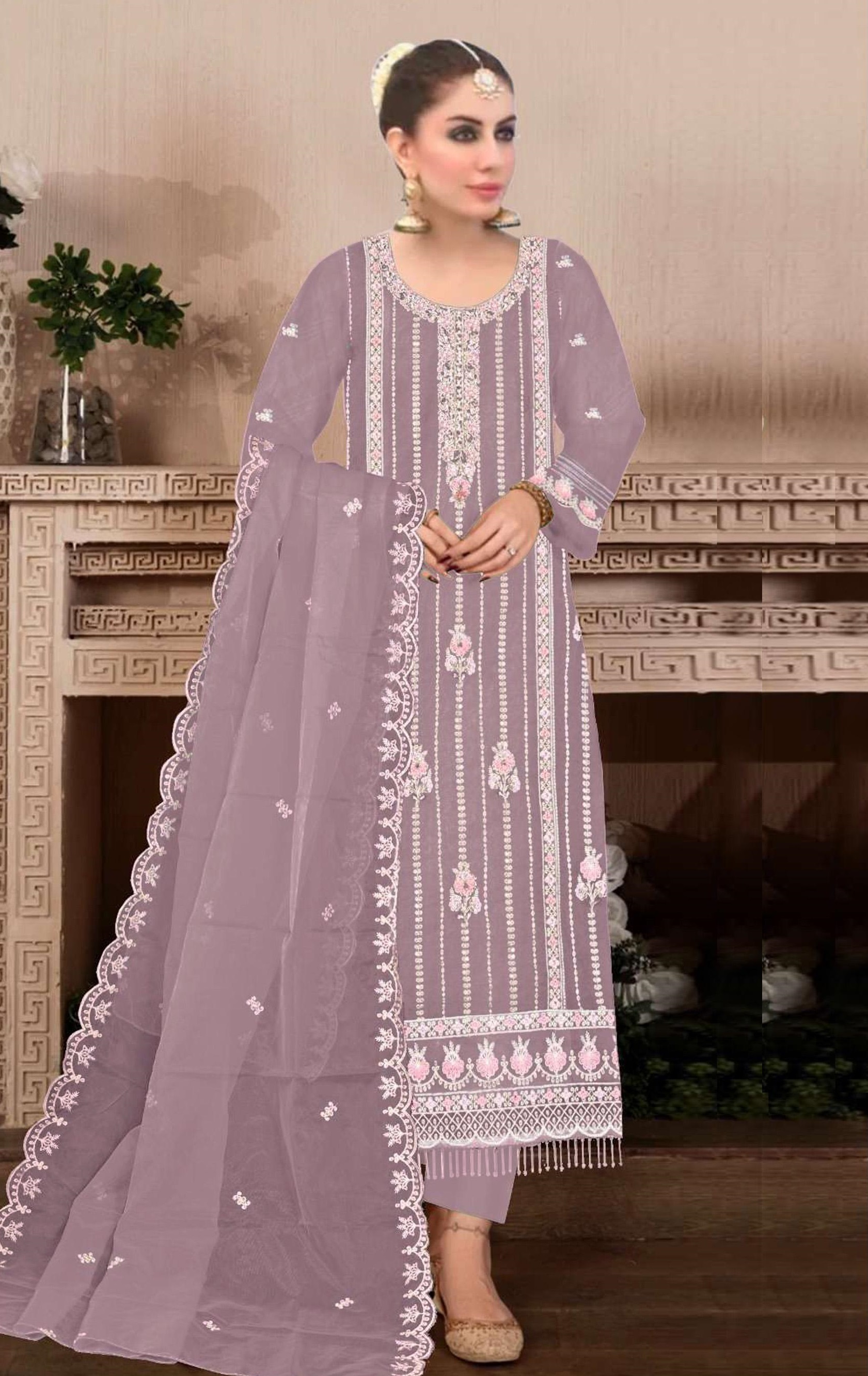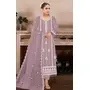 Purple Embroidered Viscose Chinon Semi Stitched Salwar Suit