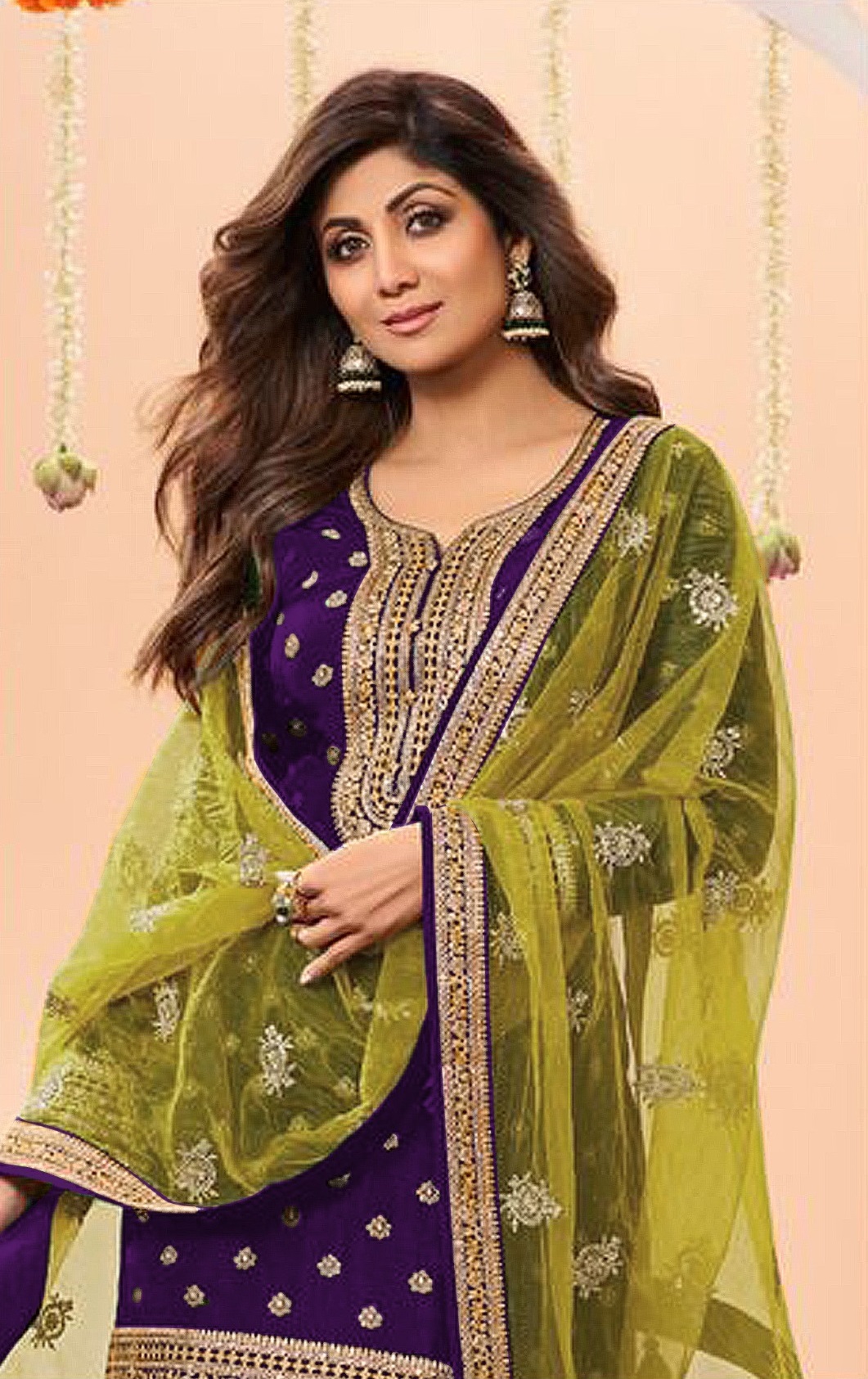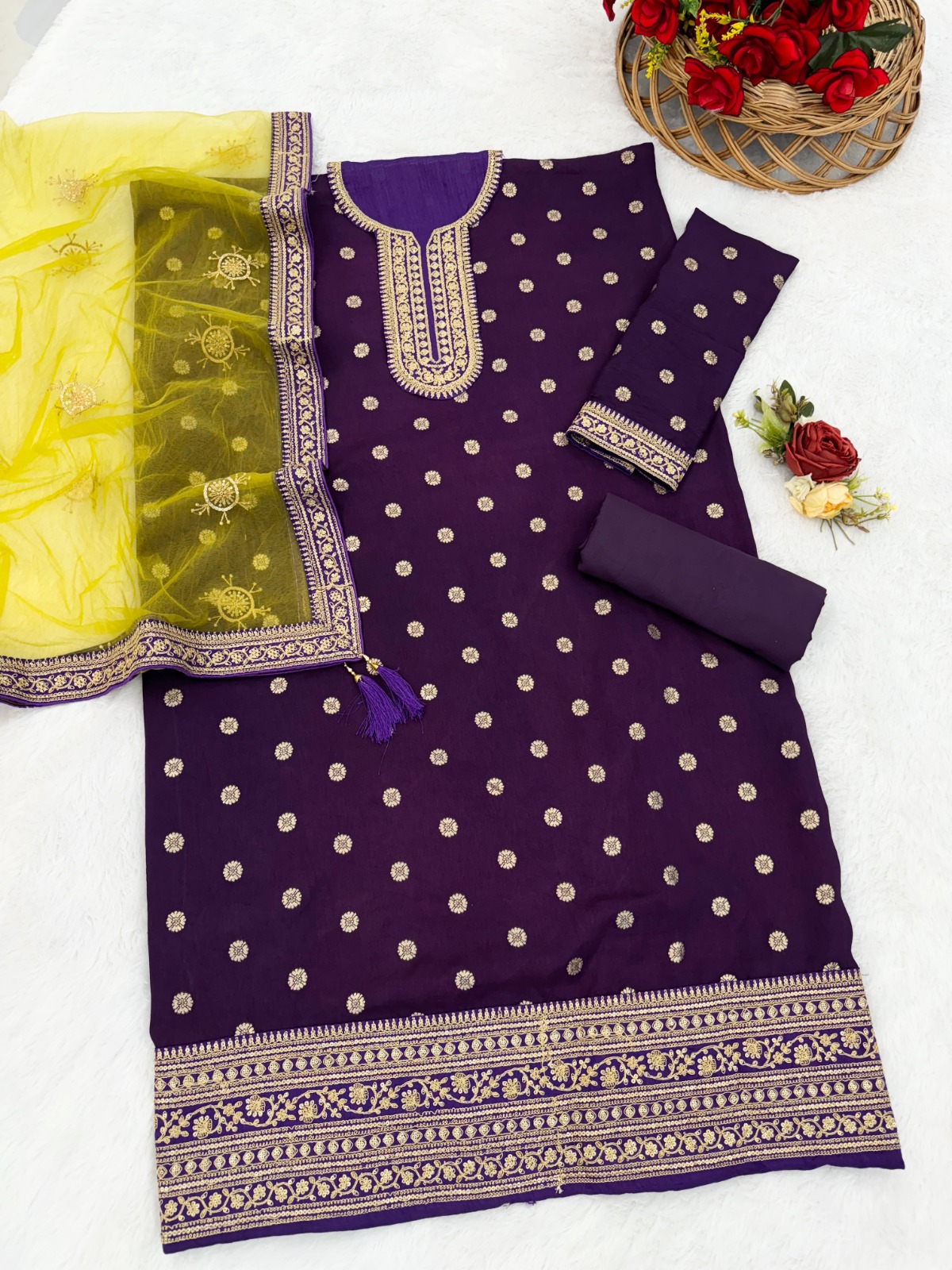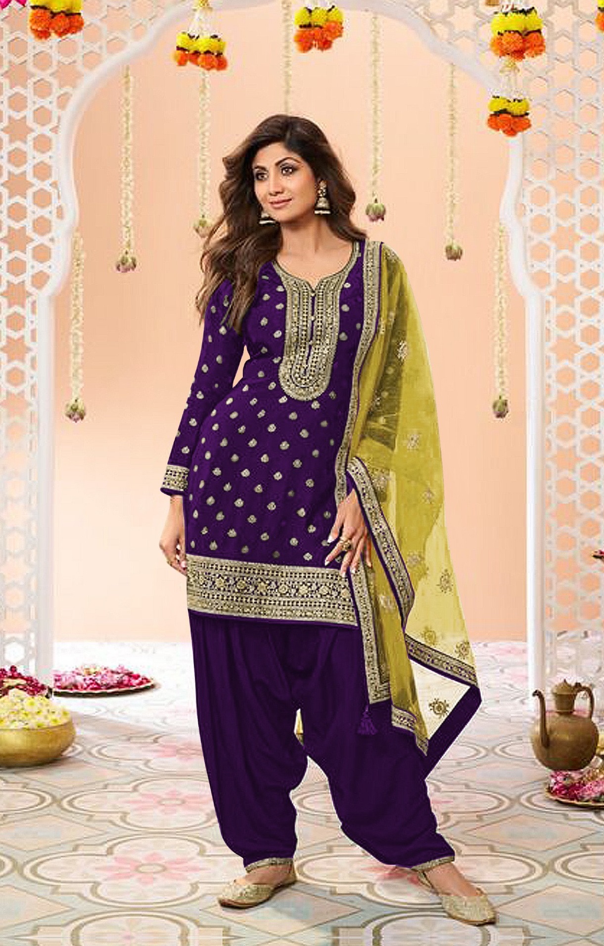 Purple Embroidered Viscose Semi Stitched Patiala Salwar Suit