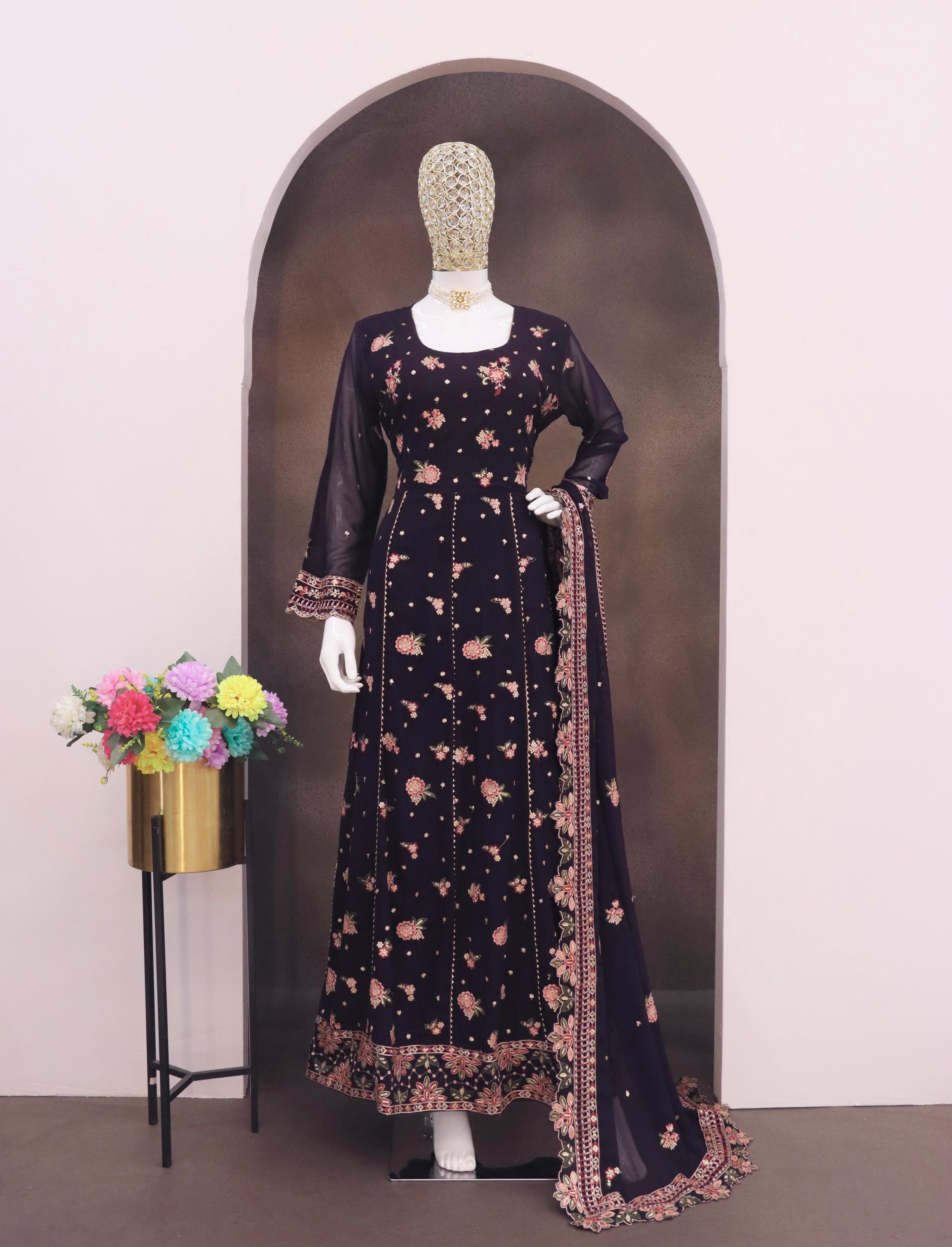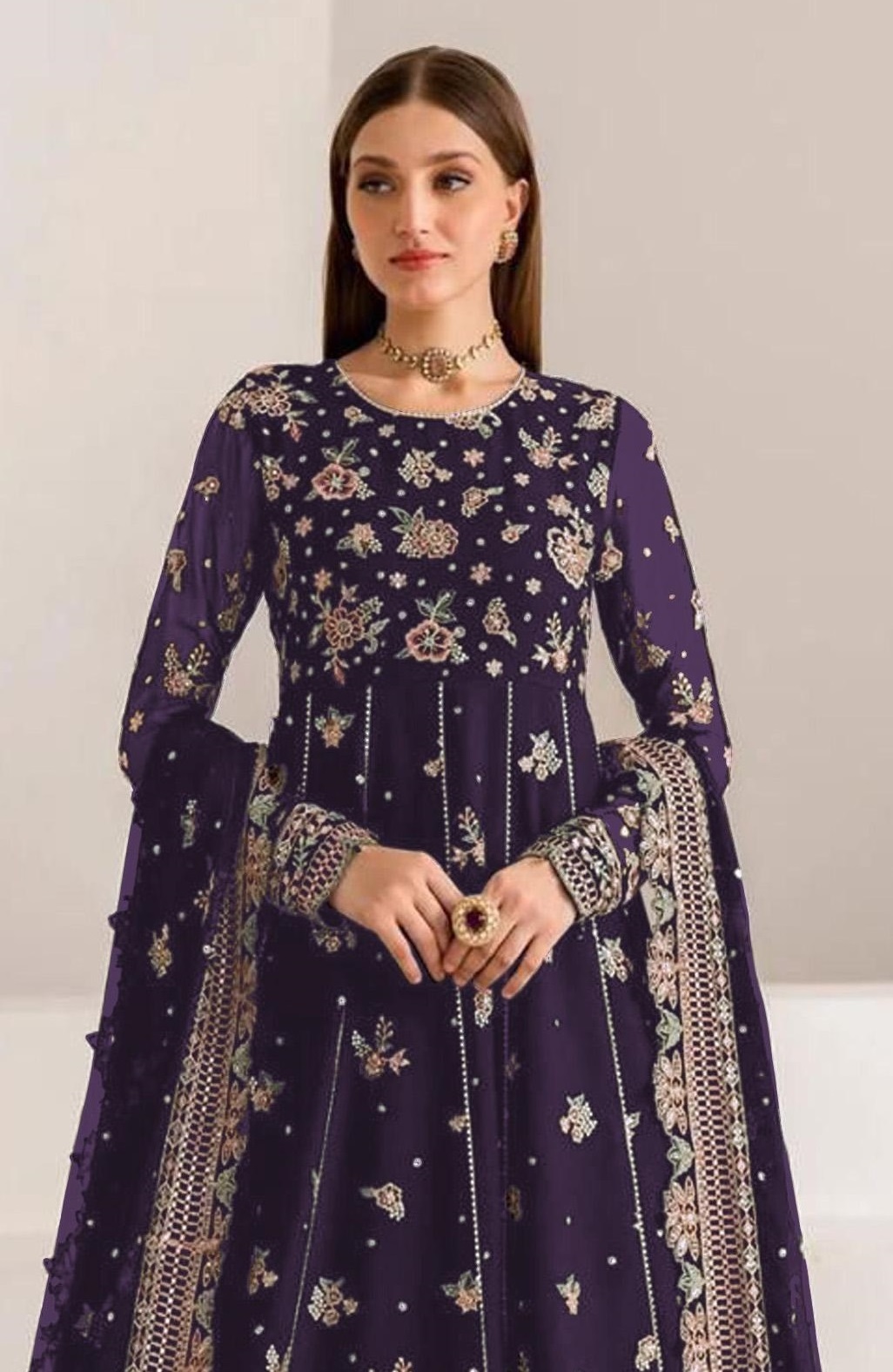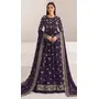 Purple Fauk Gerogette Sequence Embroidered Semi Stitched Salwar Suit