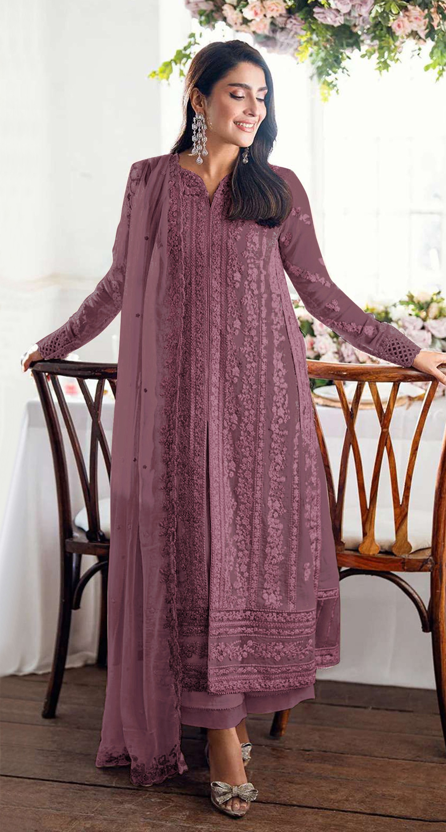 Purple Fox Georgette Semi Stiutched Suit with Embroidery Sequenc & Khatli Work