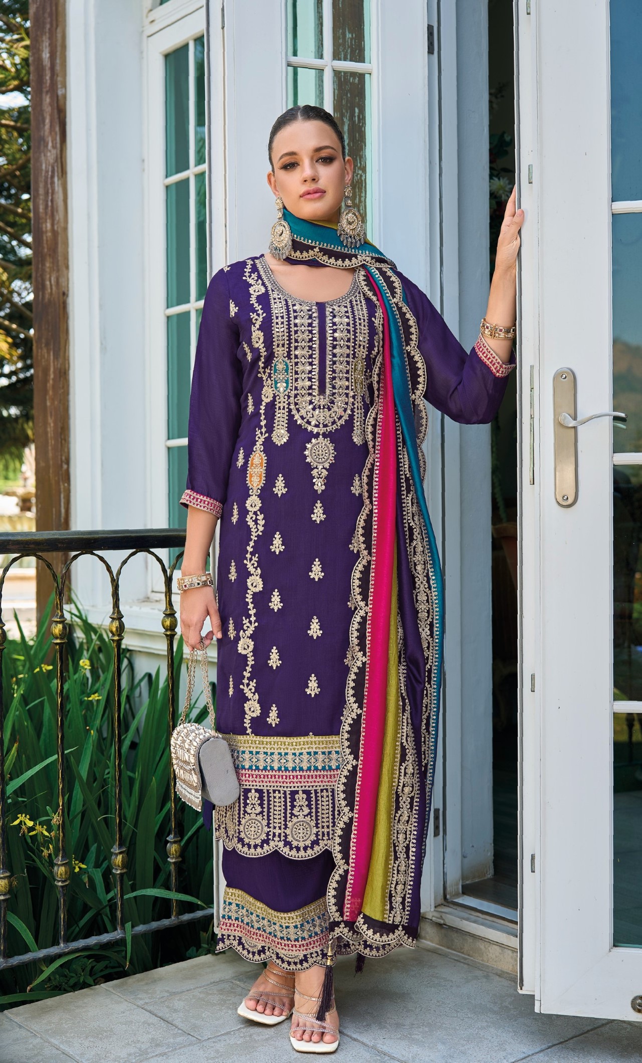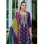 Purple Premium Embroidered Chinon Semi Stitched Salwar Suit