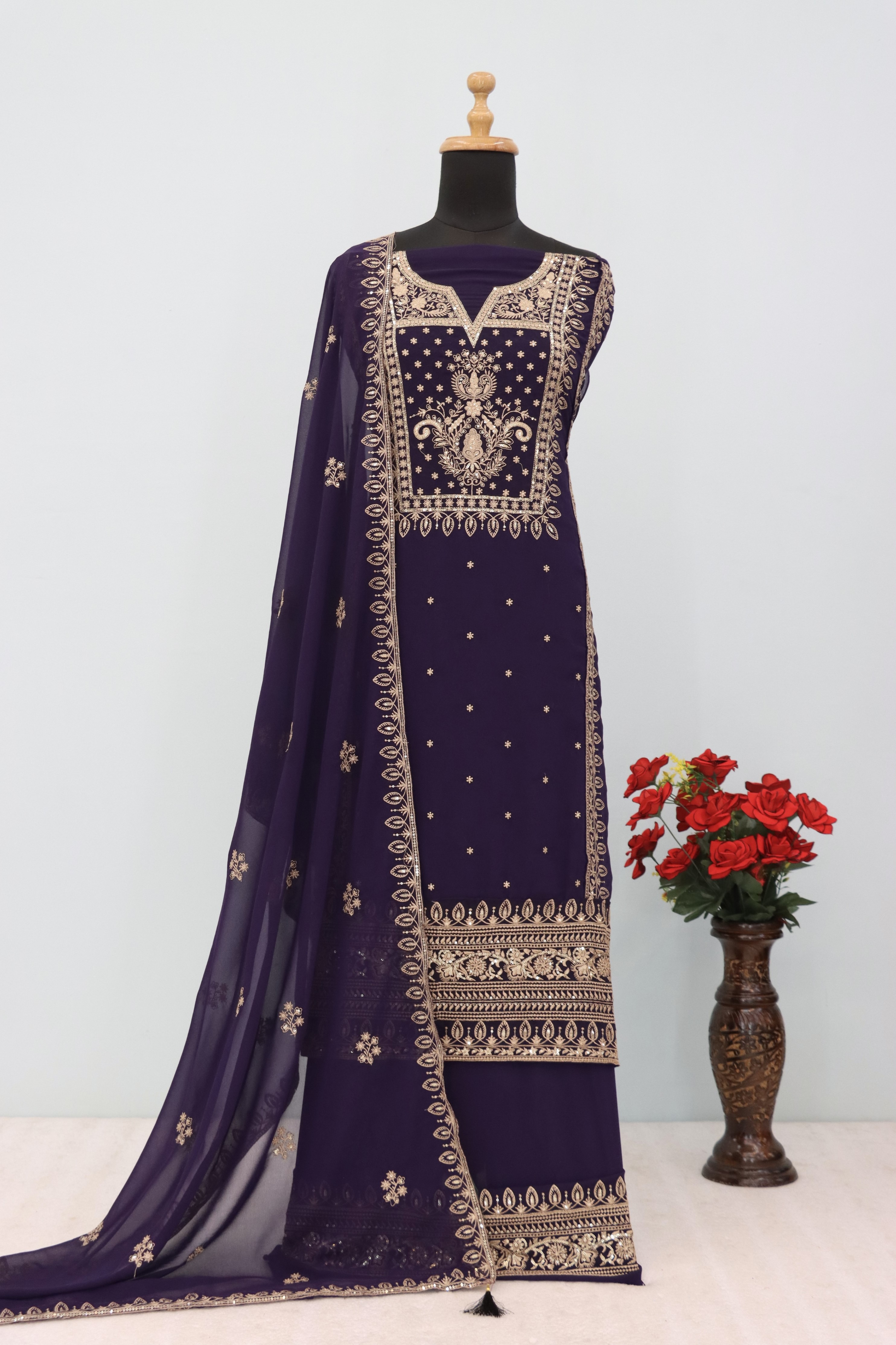 Purple Premium Embroidered Georgette Semi Stitched Salwar Suit
