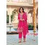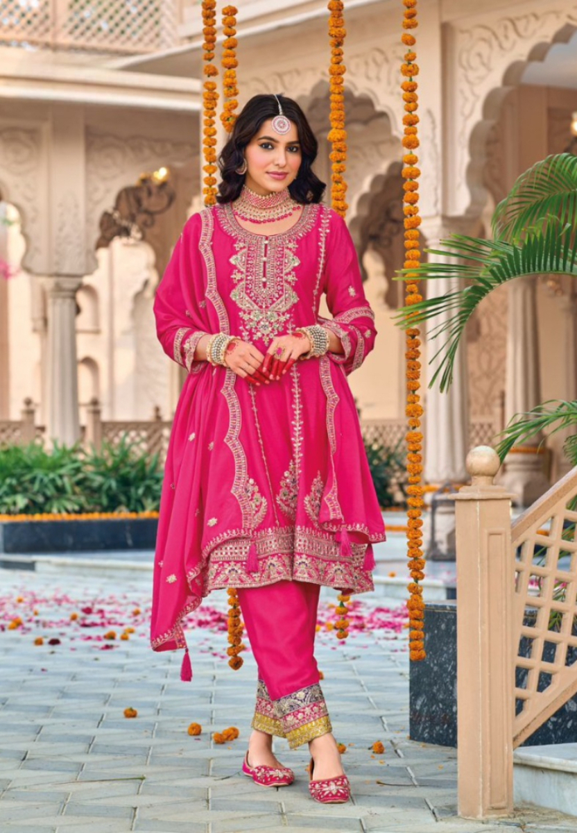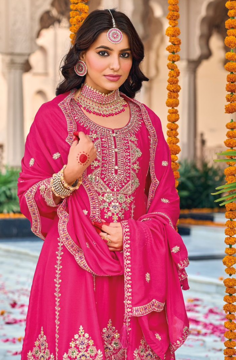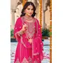 Rani Pink embroidered Chinon Squence Work free Size stitched anarkali suit