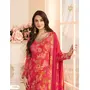 Red Chinon Semi Stitched Suit with Multi Digital Printed Work