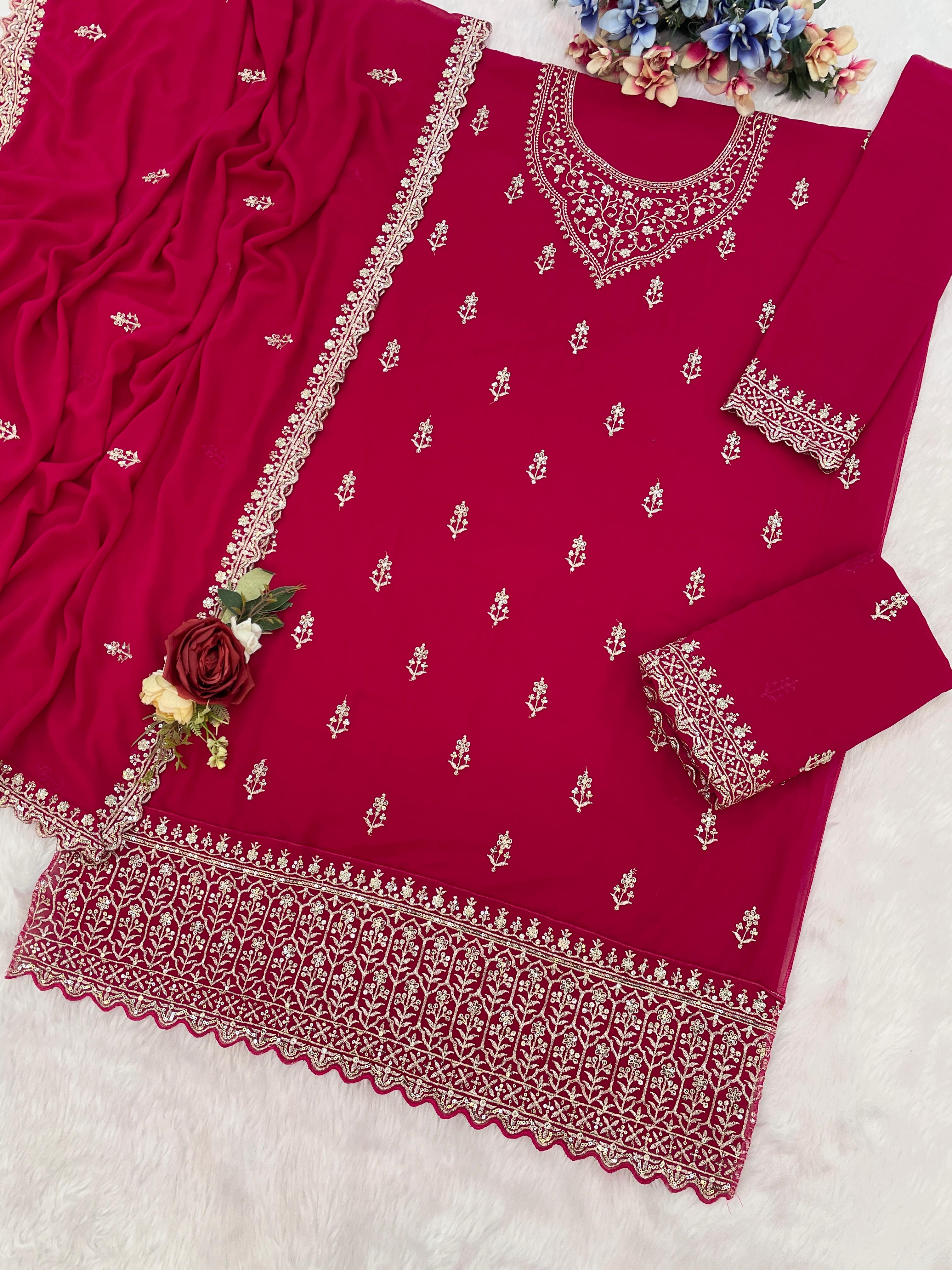 Red Georgette Semi Stitched Suit with Heavy Embroidery Work