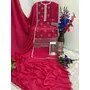 Red Heavy Chinon Semi Stitched Suit With Embroidery Bits Work