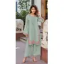 Sea Green Embroidered and Viscose Thread work Cotton Semi Stitched Salwar Suit