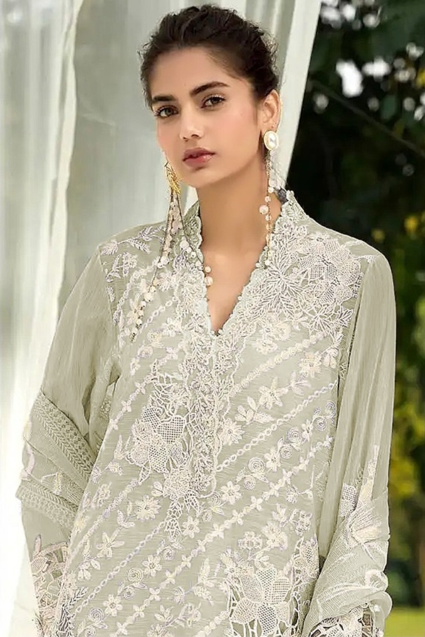 Sea Green embroidered sequence work heavy fox georgette unstitched suit with zarkan