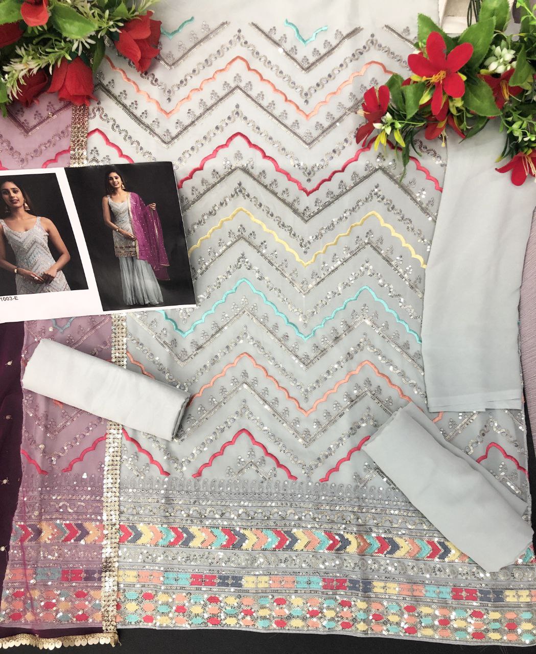 Sea Green Georgette Semi Stitched Suit with Embroidered Thread & Sequence Work