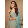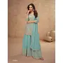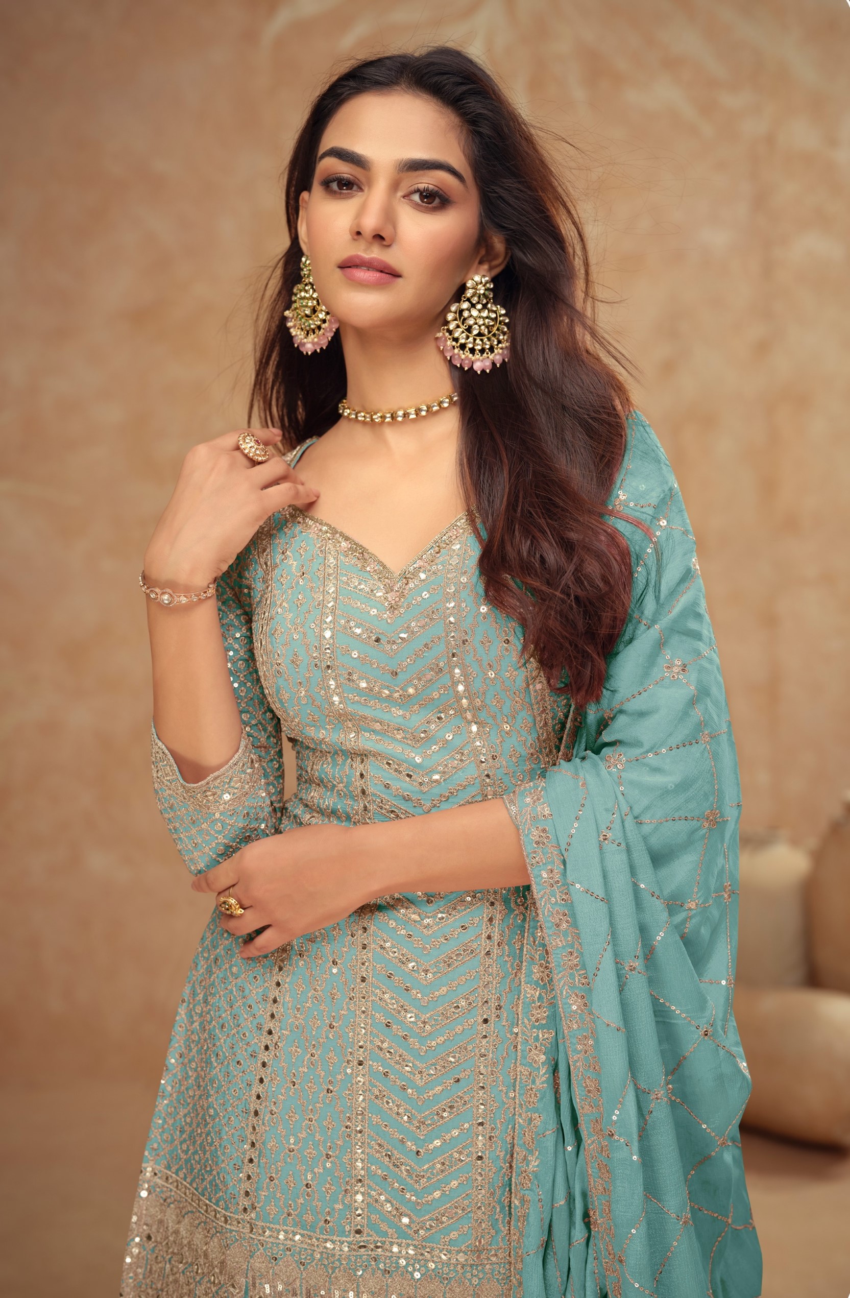 Sky Blue Chinon Sequence Embroidered Readymade Salwar Suit (Free Size)