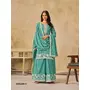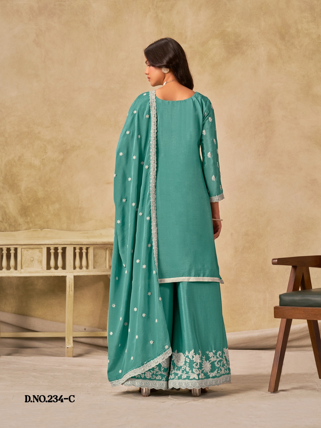 Sky blue heavy chinon semi stitched palazzo suit with embroidey work