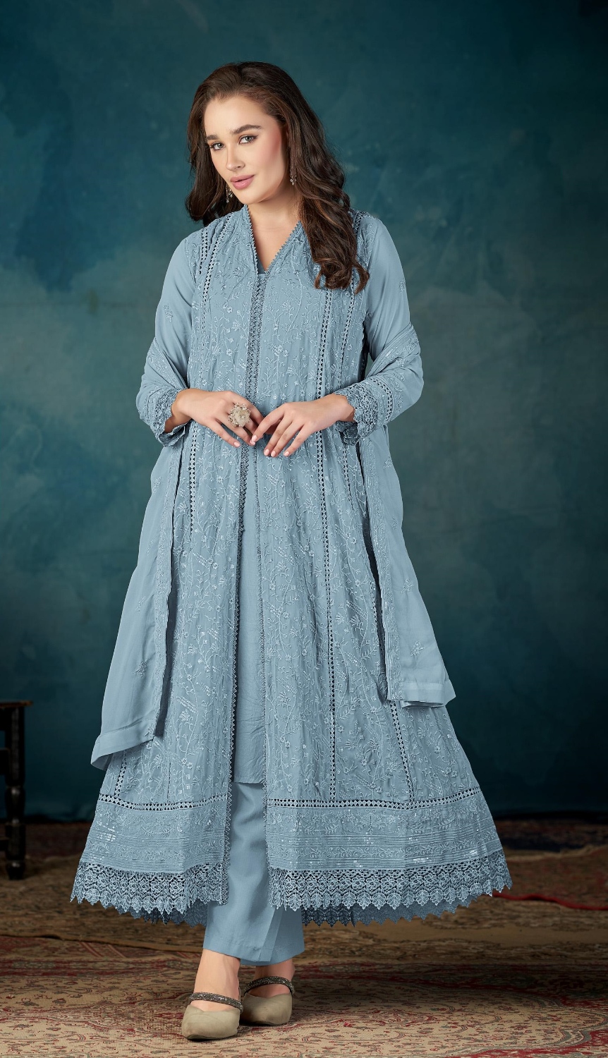 Sky Blue Heavy Faux Georgette Semi Stitched Suit with Embroidered Sequence Work