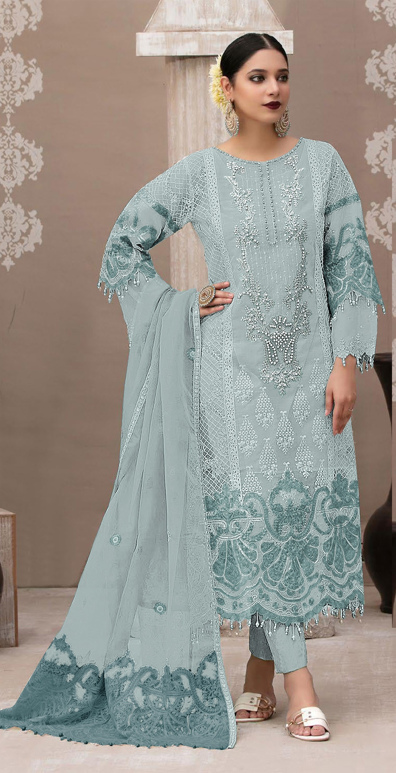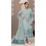 Sky Blue Organza Semi Stitched Suit with Embroidery & Sequence Work