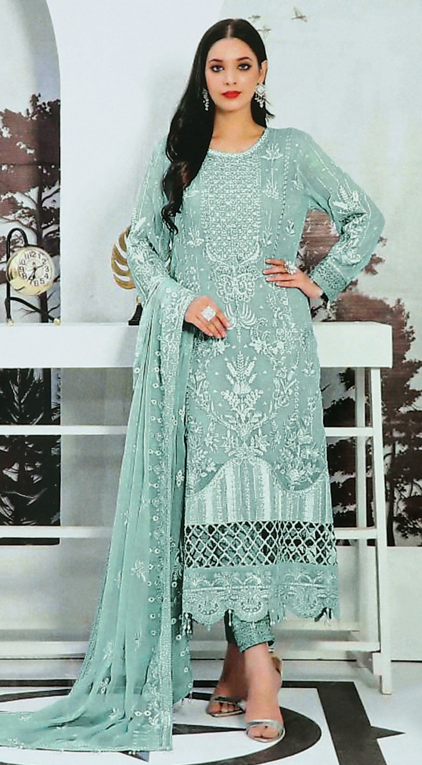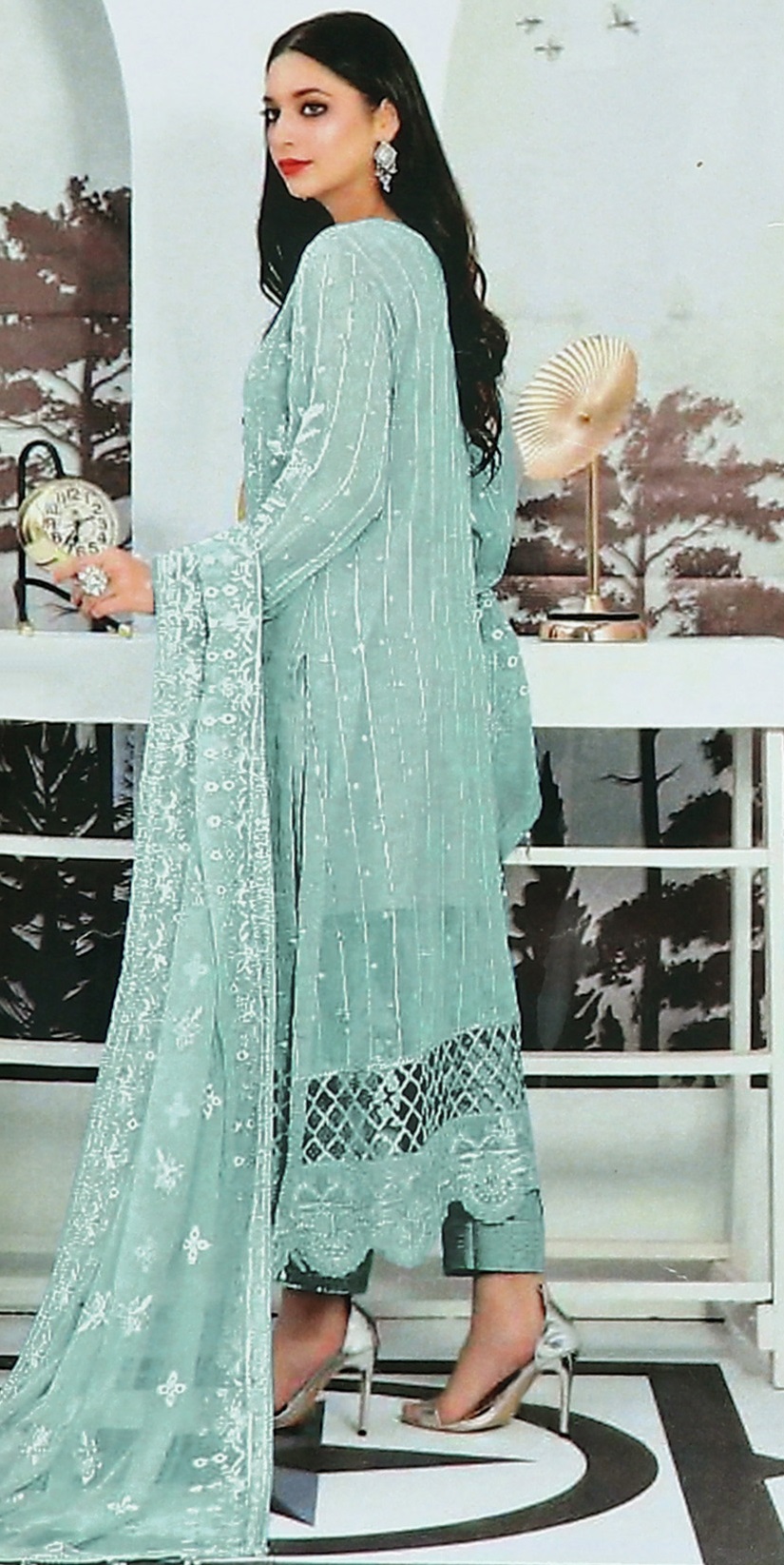 Sky_blue Embroidered Faux Georgette Semi Stitched Salwar Suit