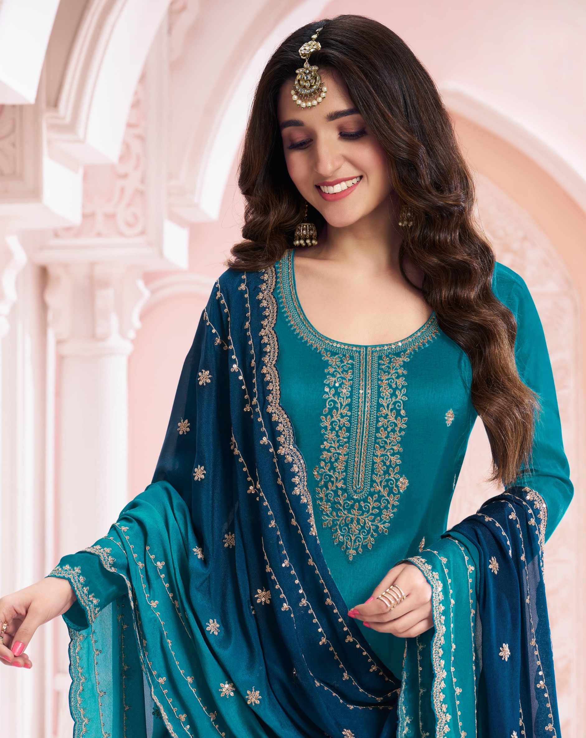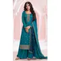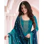 Teal Blue Green Premium Embroidered Vichitra Silk Semi Stitched Salwar Suit