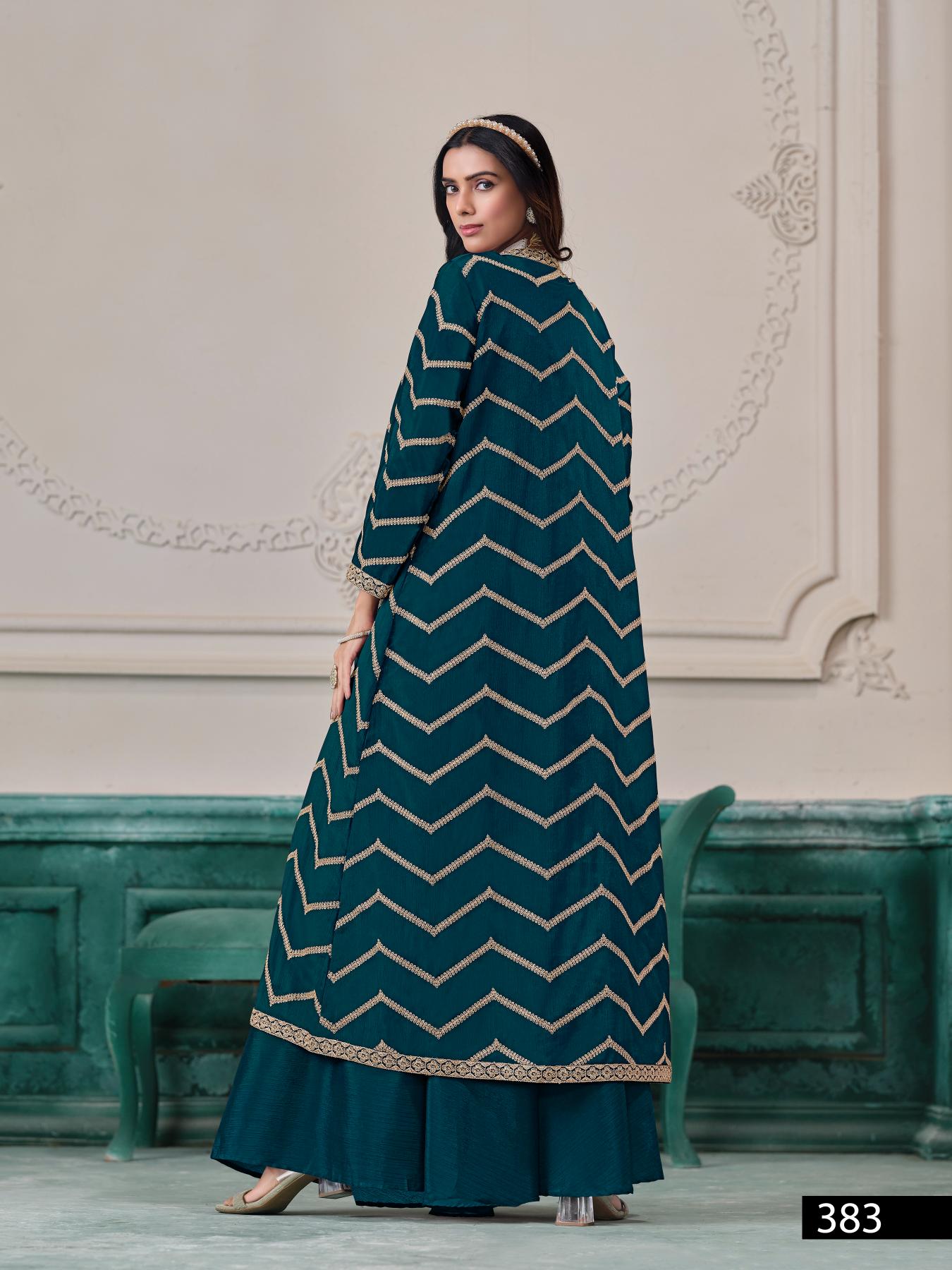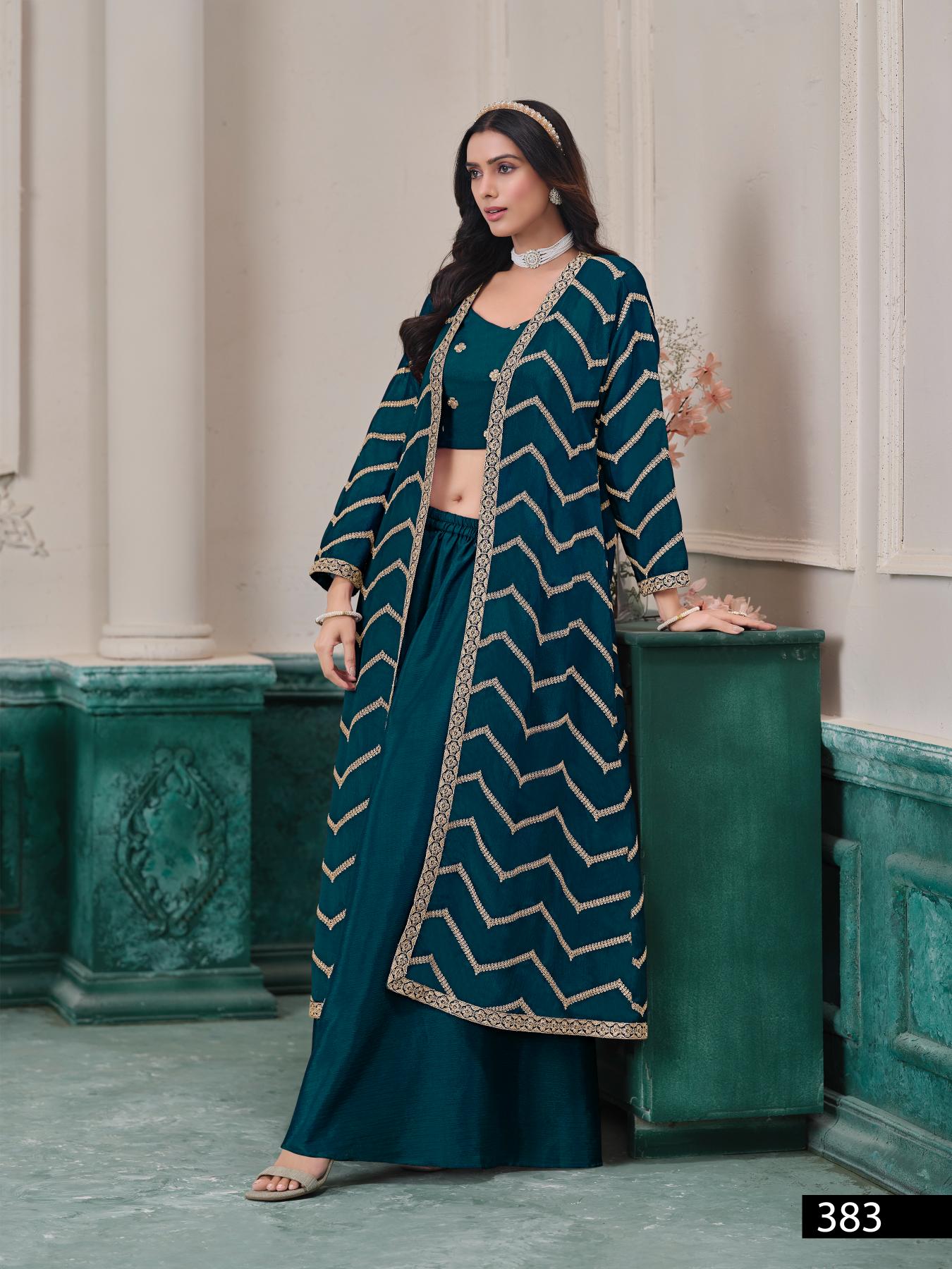 Teal Chinon Designer Free Size Stitched Indo Western