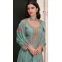 Teal Embroderied Work Silk Semi-Stitched Anarkali Suit