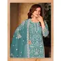 Teal Embroidered Net Semi Stitched Plazzo Suit