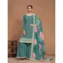 Teal Embroidered Roman Silk Semi Stitched Sharara Suit