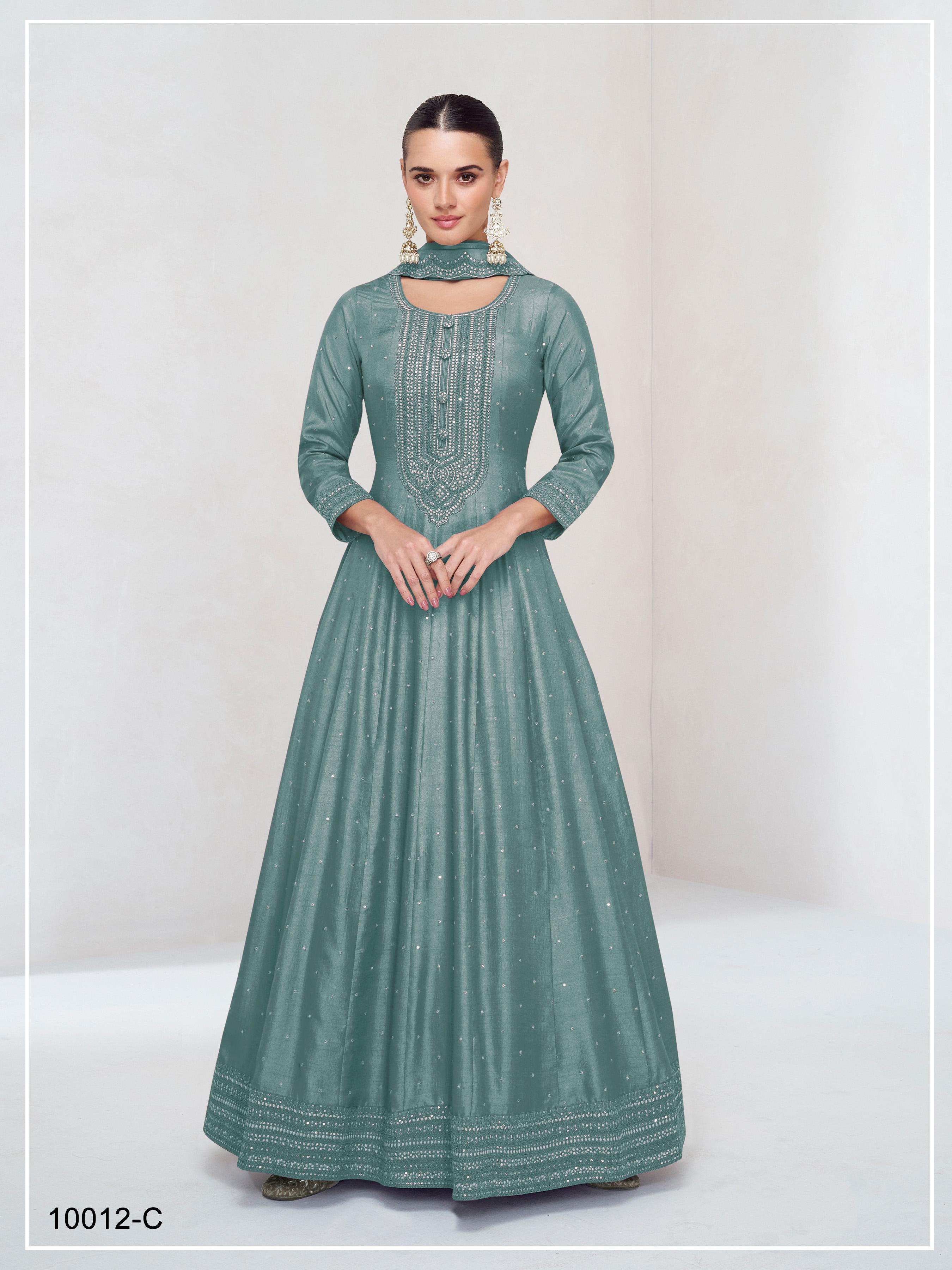 Teal Green Embroidered Vichitra Silk Free Size Stitched anarkali suit