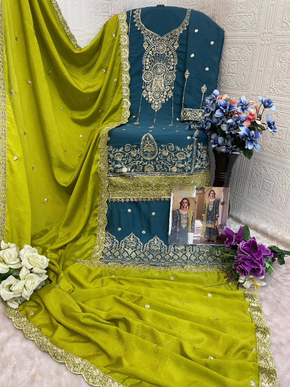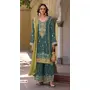 Teal Green Heavy Chinon Semi Stitched Suit With Embroidery Bits Work