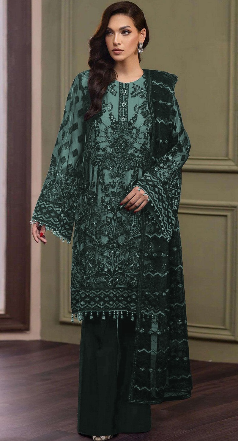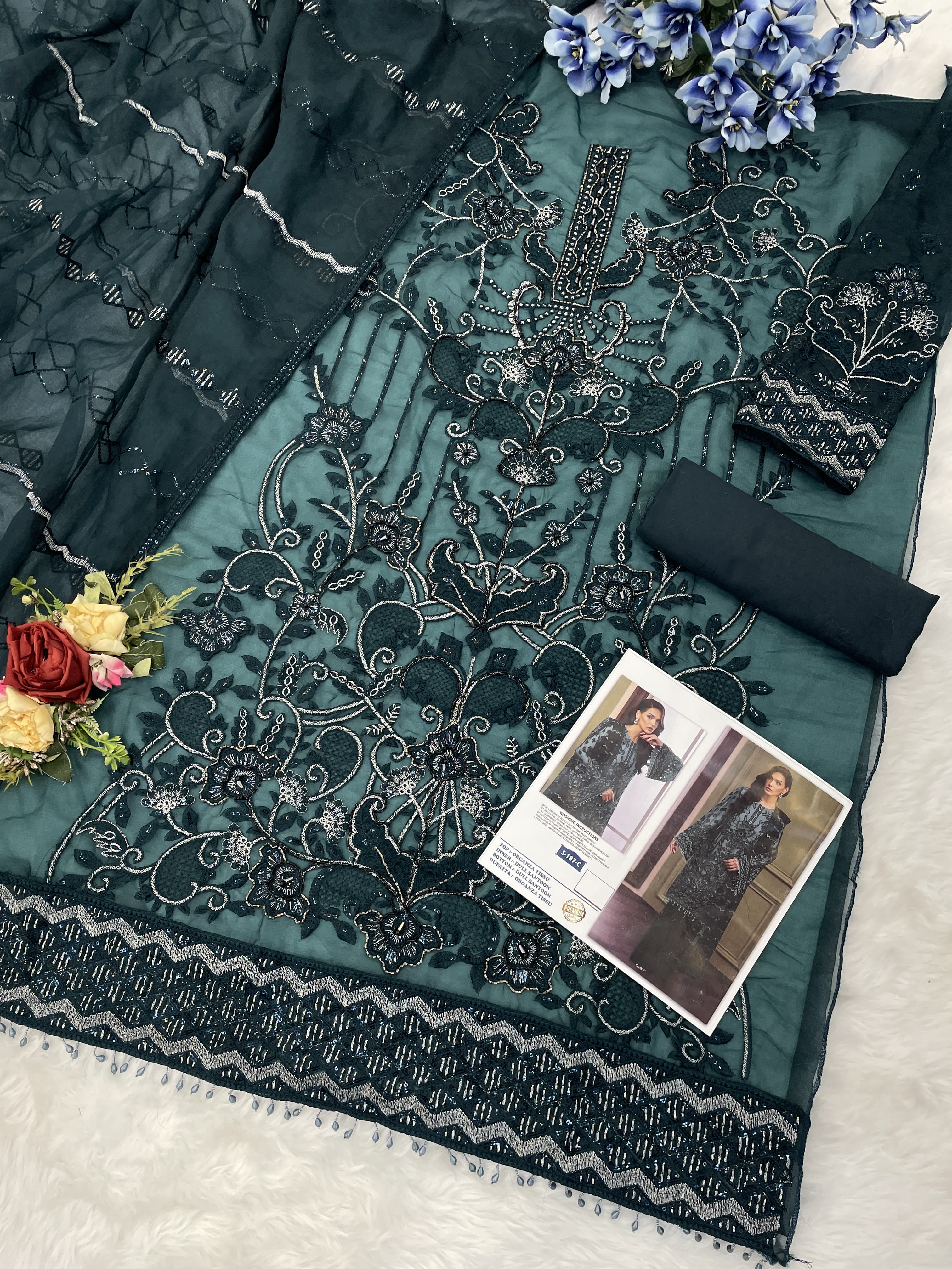 Teal Green Heavy Organza With Embroidery And Khatli Work Salwar Suit