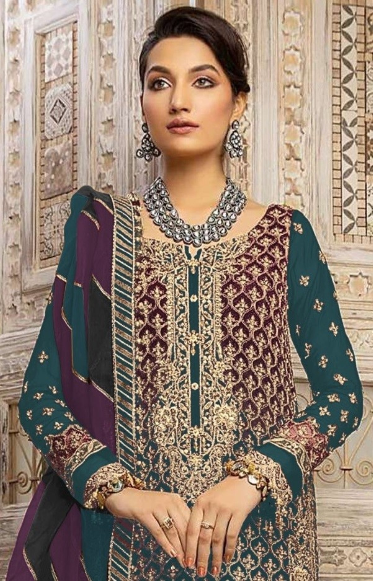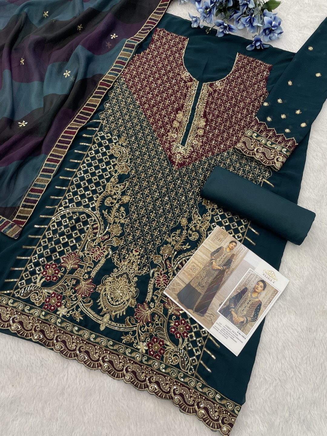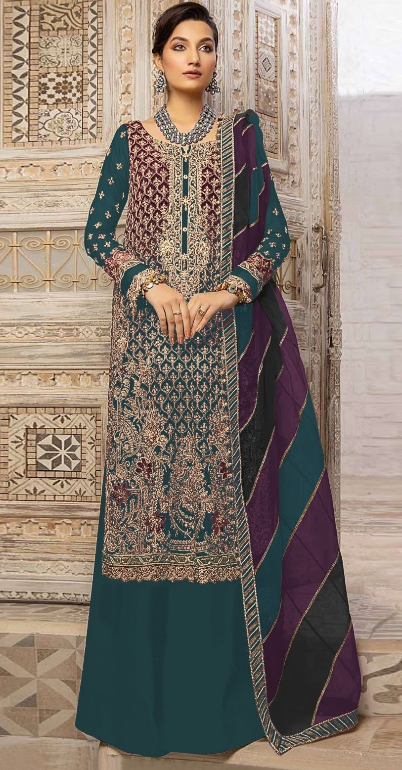 Teal Heavy Fox Georgette Embroidery Plazzo Suit