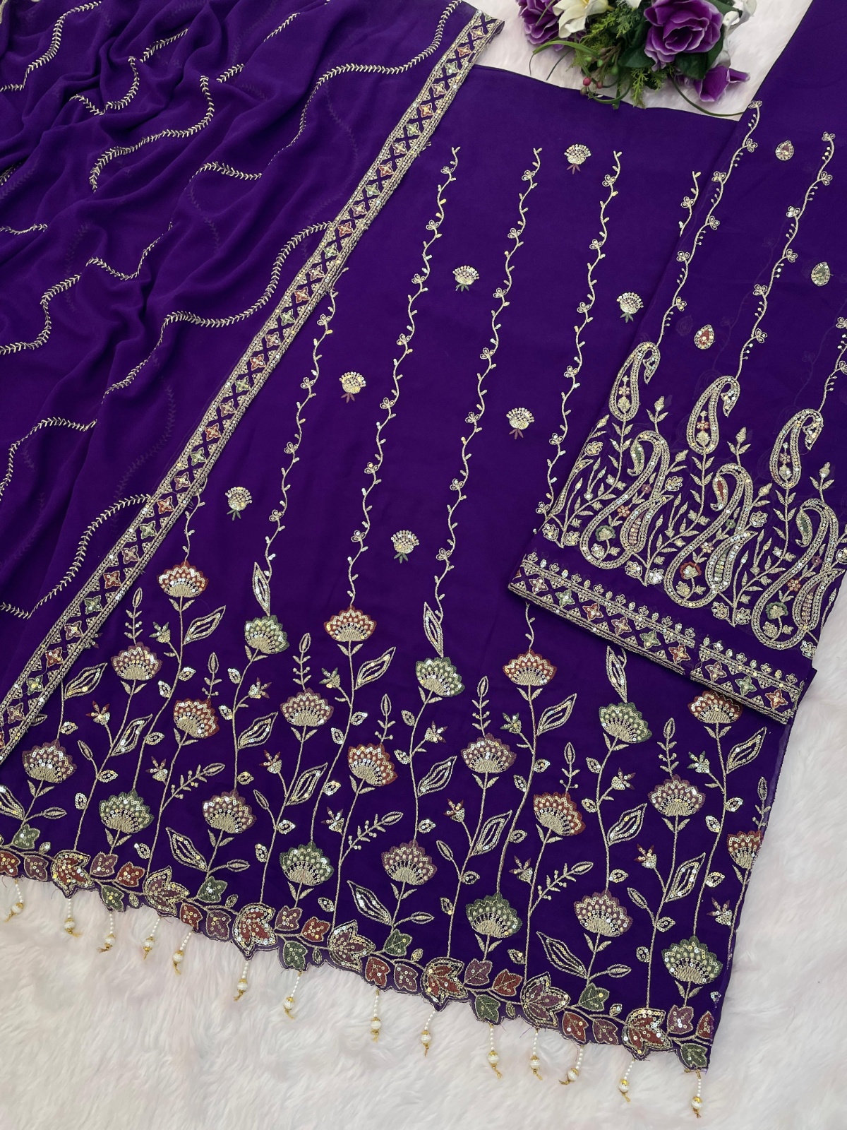 Violet Heavy Fox Georgette Semi Stitched Suit With Embroidery Work