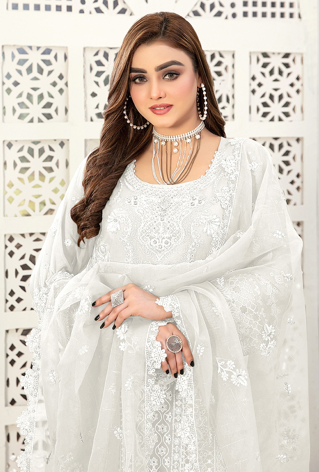 White Embroidered Faux Georgette Semi Stitched Salwar Suit