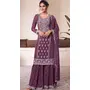 Wine Embroderied Work Silk Semi-Stitched Sharara Suit