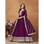Wine Embroidered Art Silk Semi Stitched Anarkali Suit