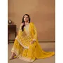 Yellow Embroidered Faux Georgette Semi Stitched Salwar Suit