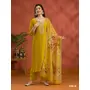 Yellow Silk Embroidered Viscose Thread Jari work Semi Stitched Salwar Suit