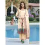 Beige Color Linen Fabric Digital Printed Ethnic Readymade Suit For Trendy Looks