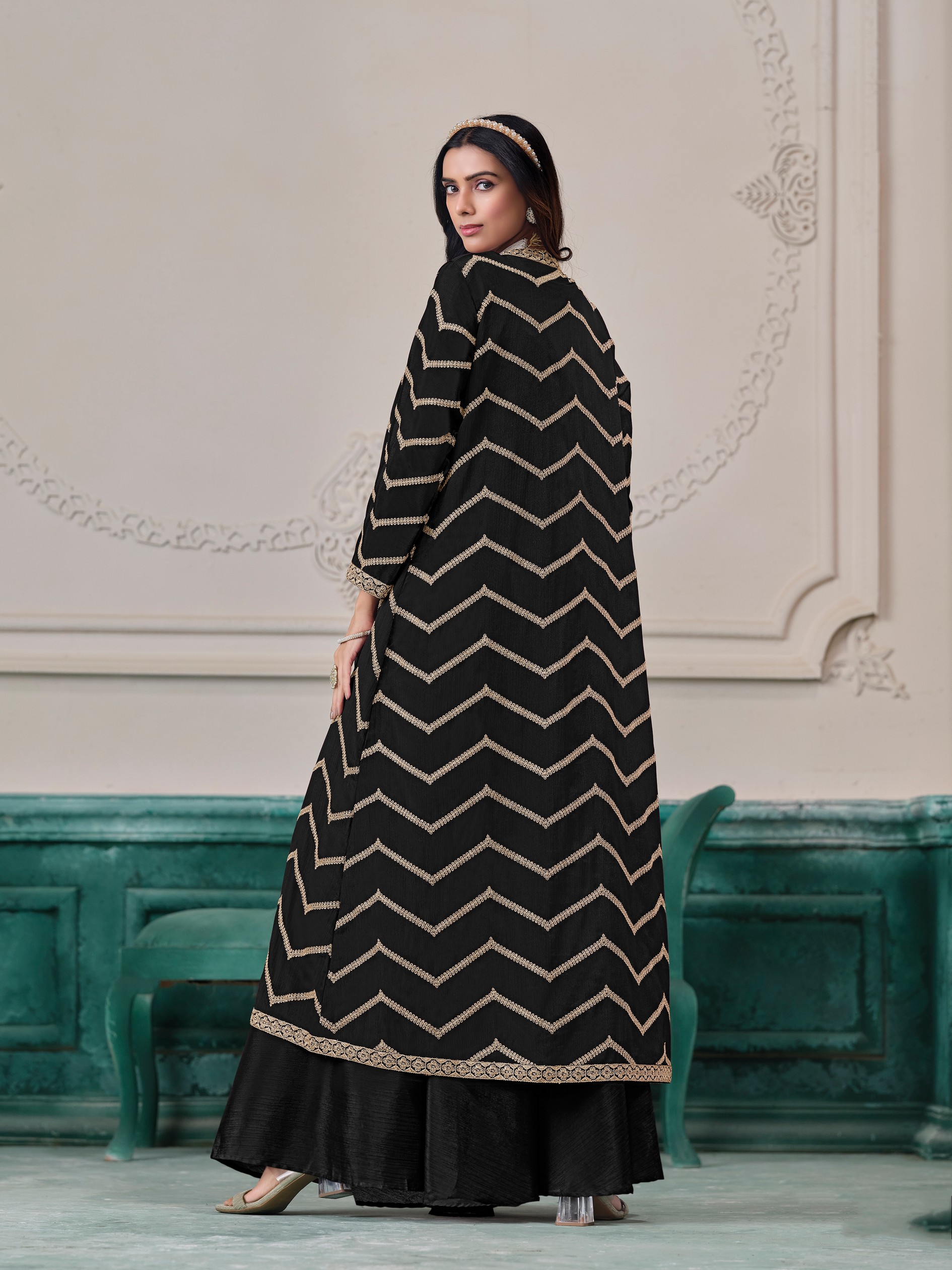 Black Color Designer Wedding Ceremonial Wear Designer Palazzo Dress With Shrug