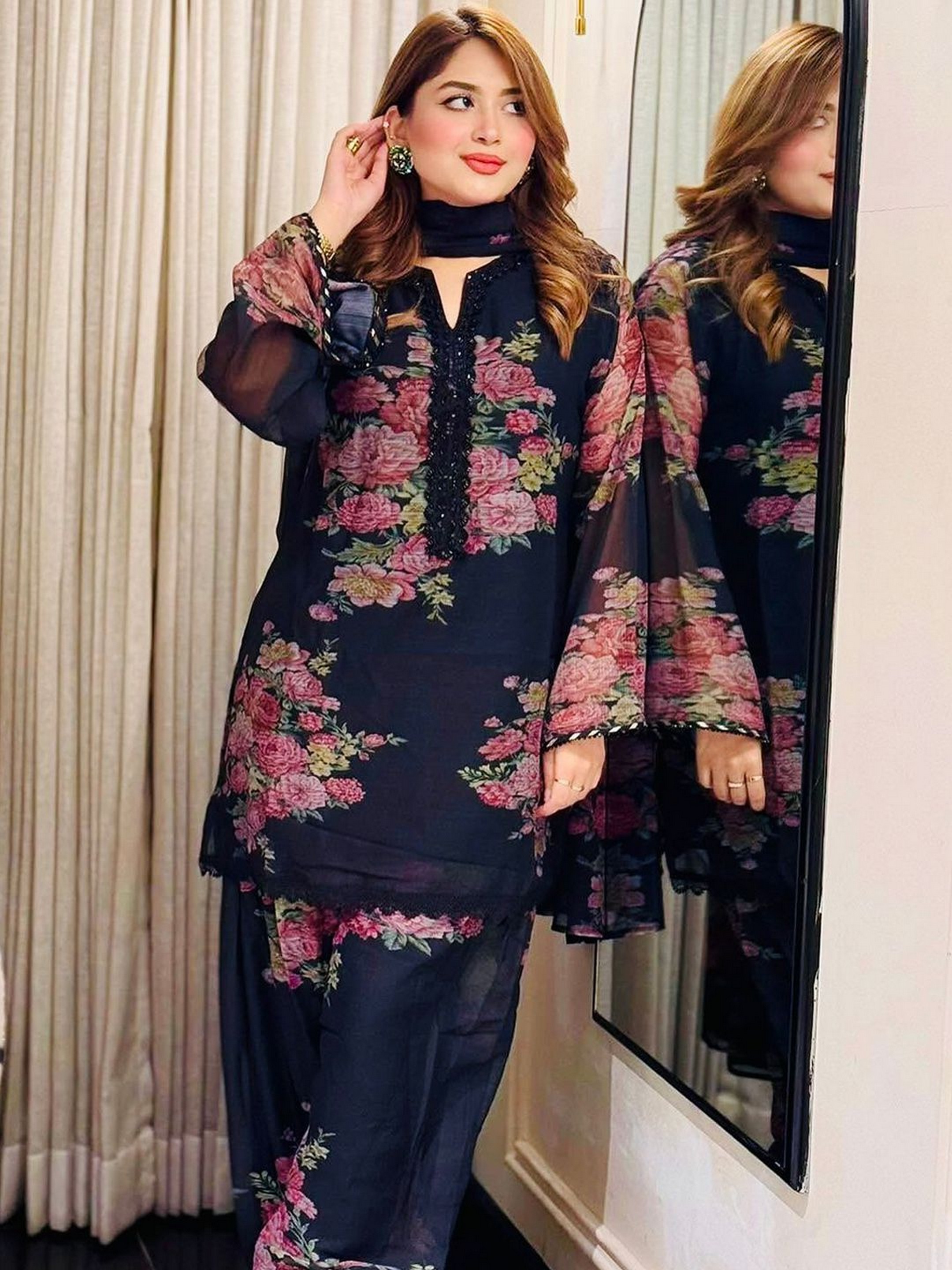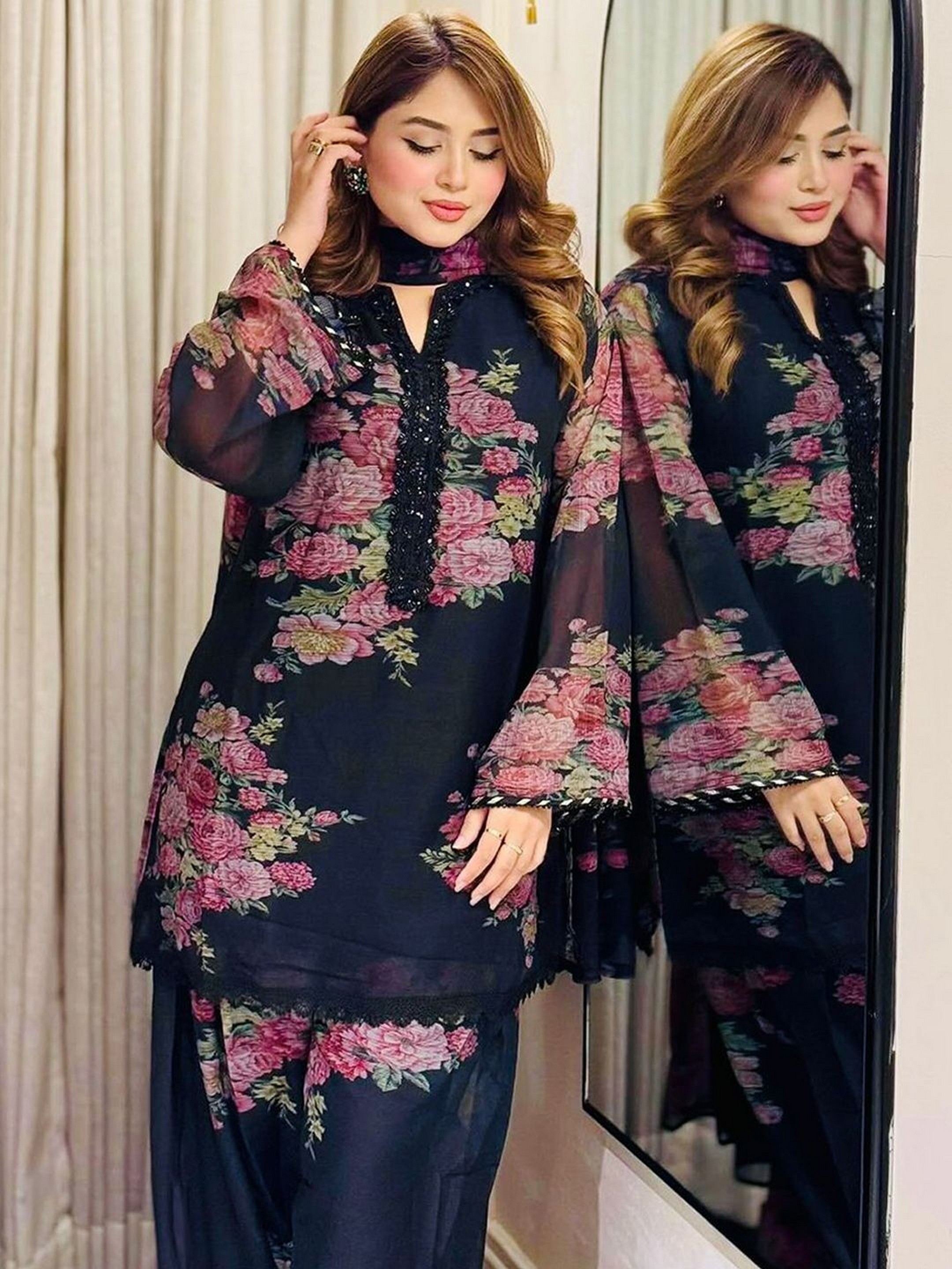 Garb These Suit in Fine Colored Pair With Bottom And Dupatta.These Top Are Faux Georgette And Bottom Are Fabricated On Crepe Pair With Faux Georgette Dupatta.Its Beautified With Printed Designer, Embroidery Work.
