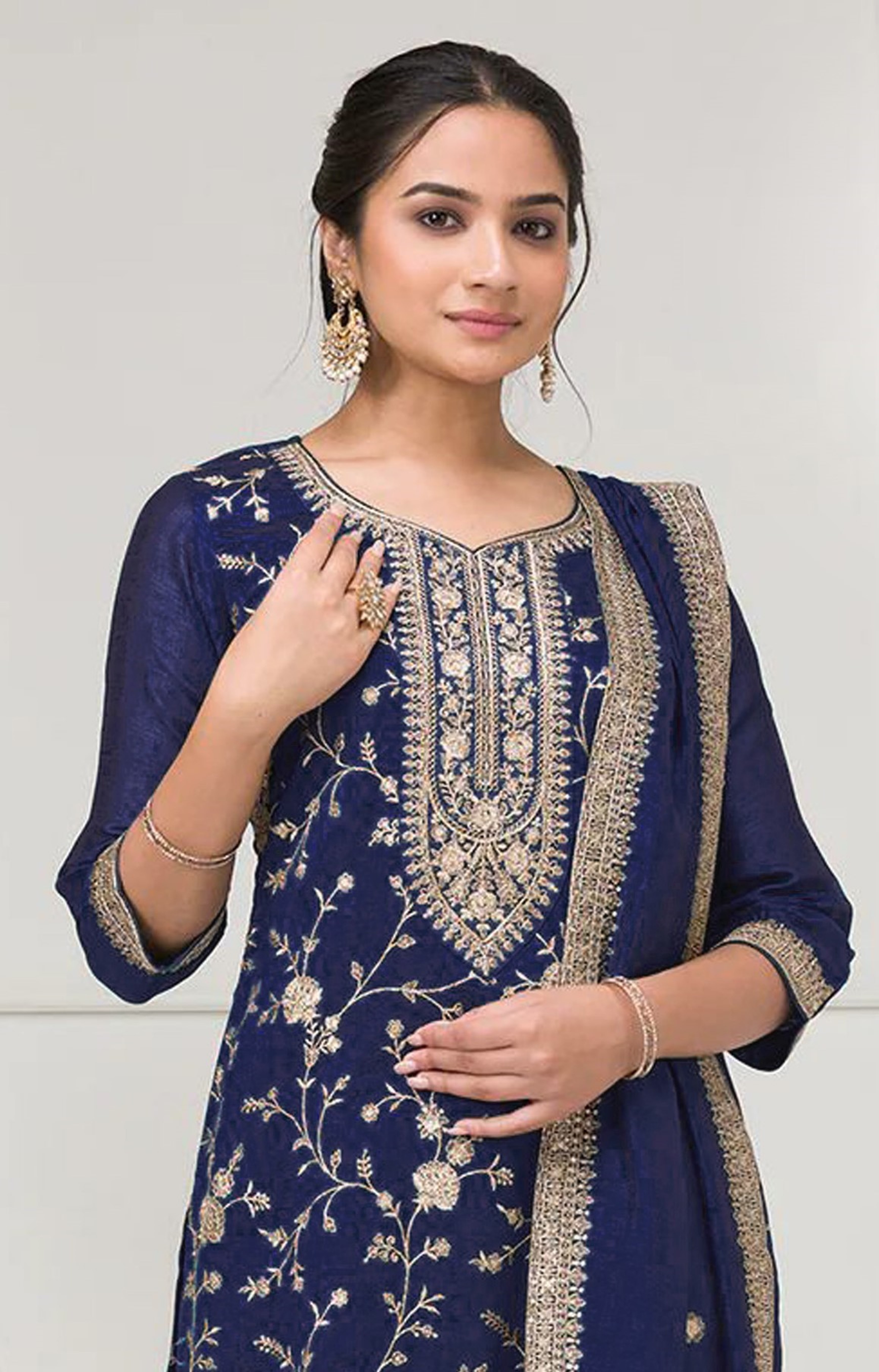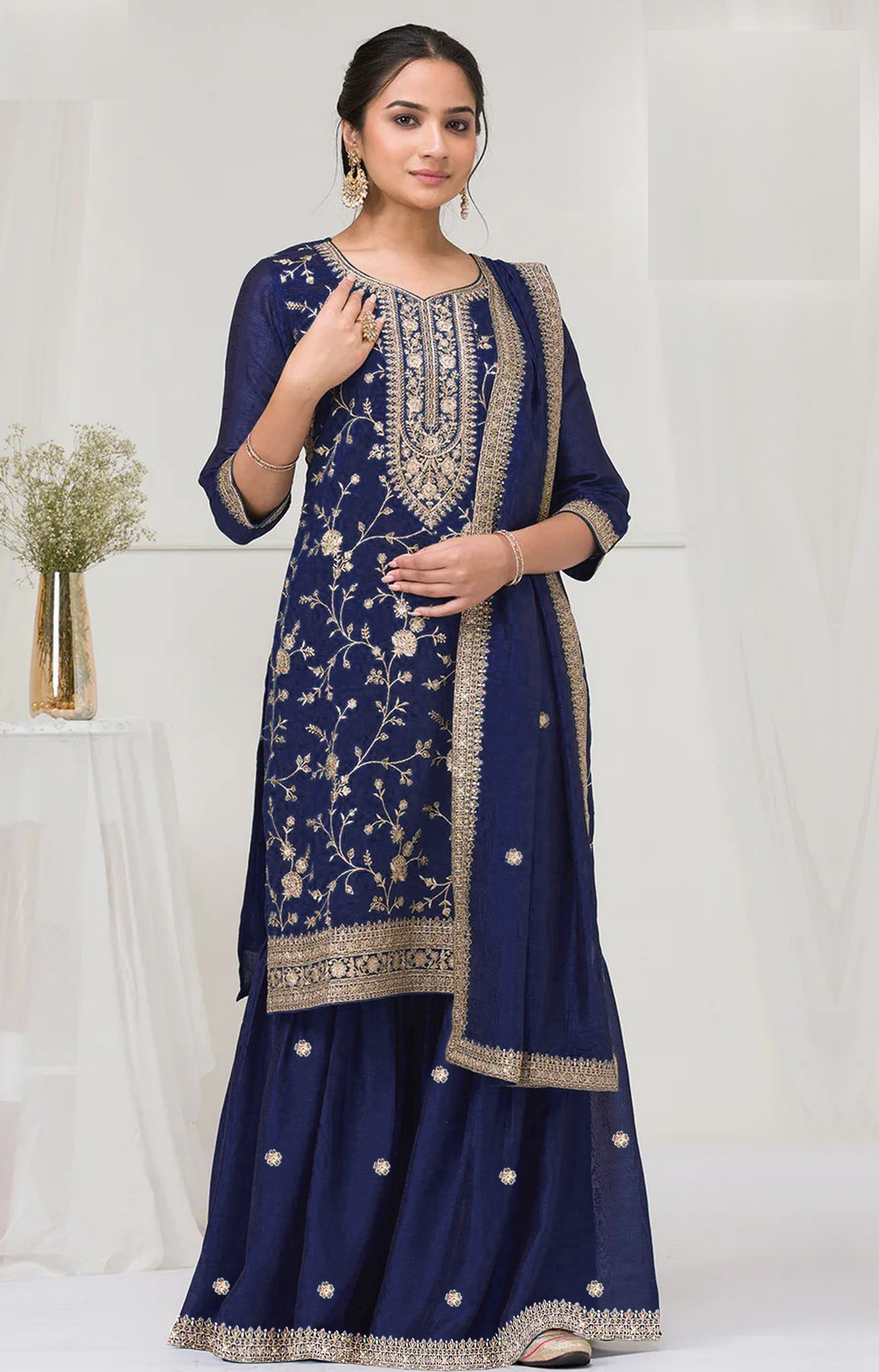 Blue Color Vichitra Silk Fabric Designer Embroidery Work Palazzo Dress