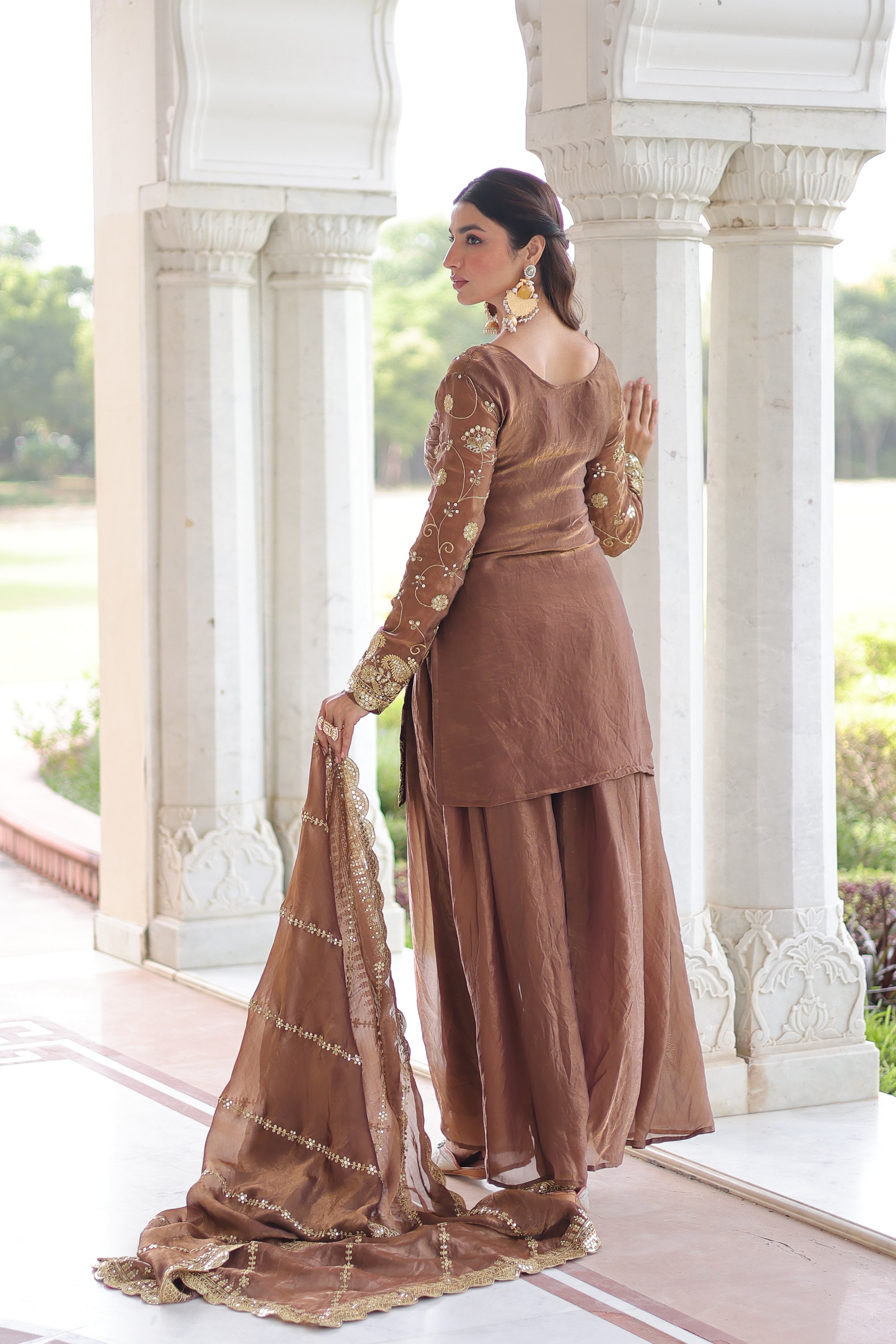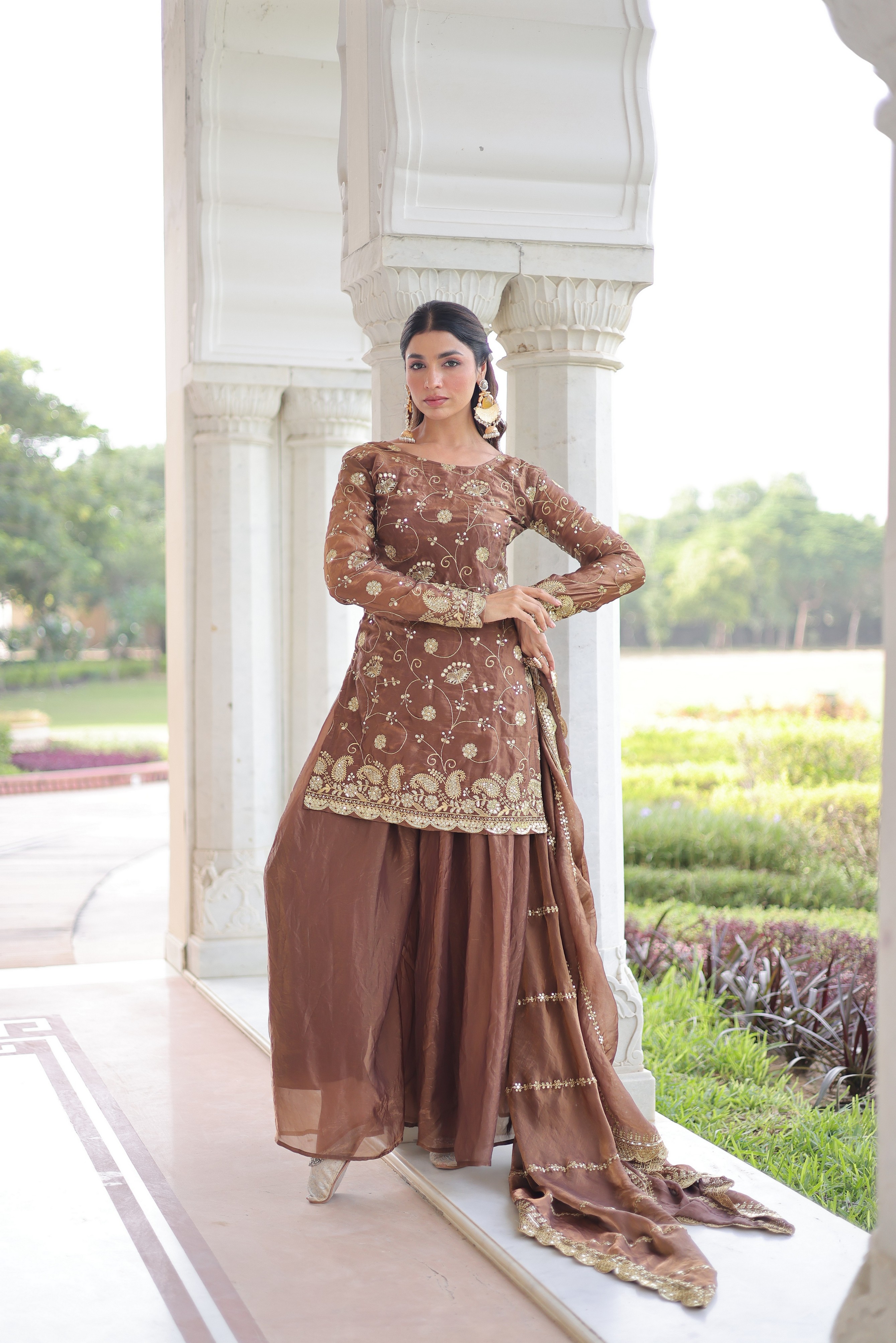 Coffee Color Beautiful Partywear Sharara Dress For Rich Indian Girlie Looks