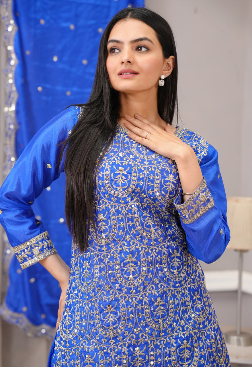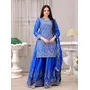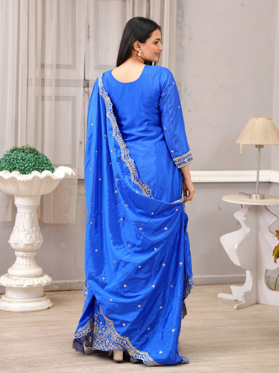 Designer Ethnic Gown Set with Dupatta Chinon Fabric Sequence Embroidery Work for Women – Blue Color