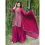 Top, Fabric : Chinon, Inner : Micro, Work : Sequence Embroidery Work, Top length : 36 inch, Stich : S(36), M(38), L(40), XL(42), XXL(44), sharara, Fabric: Chinon With Embroidery Work, Inner : Micro, Stich :- Full Stich With Elastic, Bottom Length: 40 inch, Dupata, Fabric : Chinon With Heavy Embroidery Work, Work. : Sequence Embroidery Work, Length : 2.2 meter.