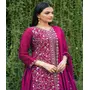 Designer Ethnic Gown Set with Dupatta Chinon Fabric Sequence Embroidery Work for Women – Pink Color