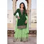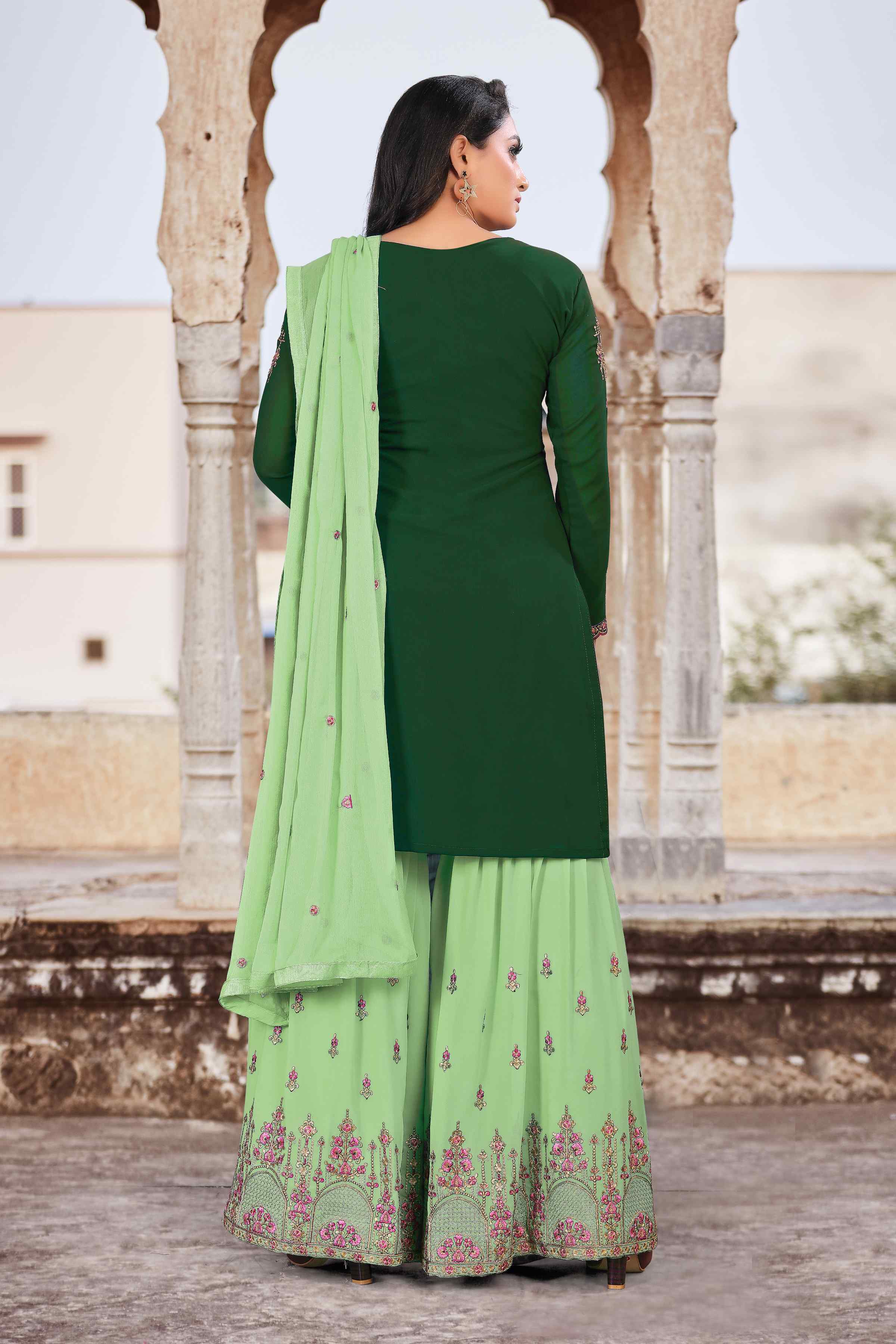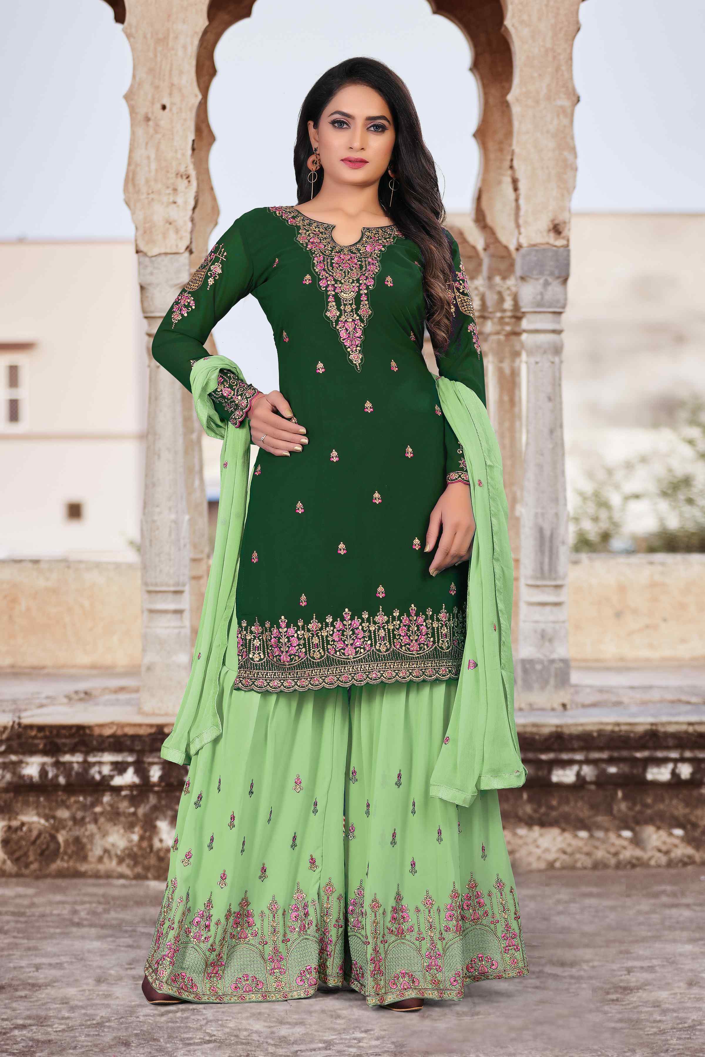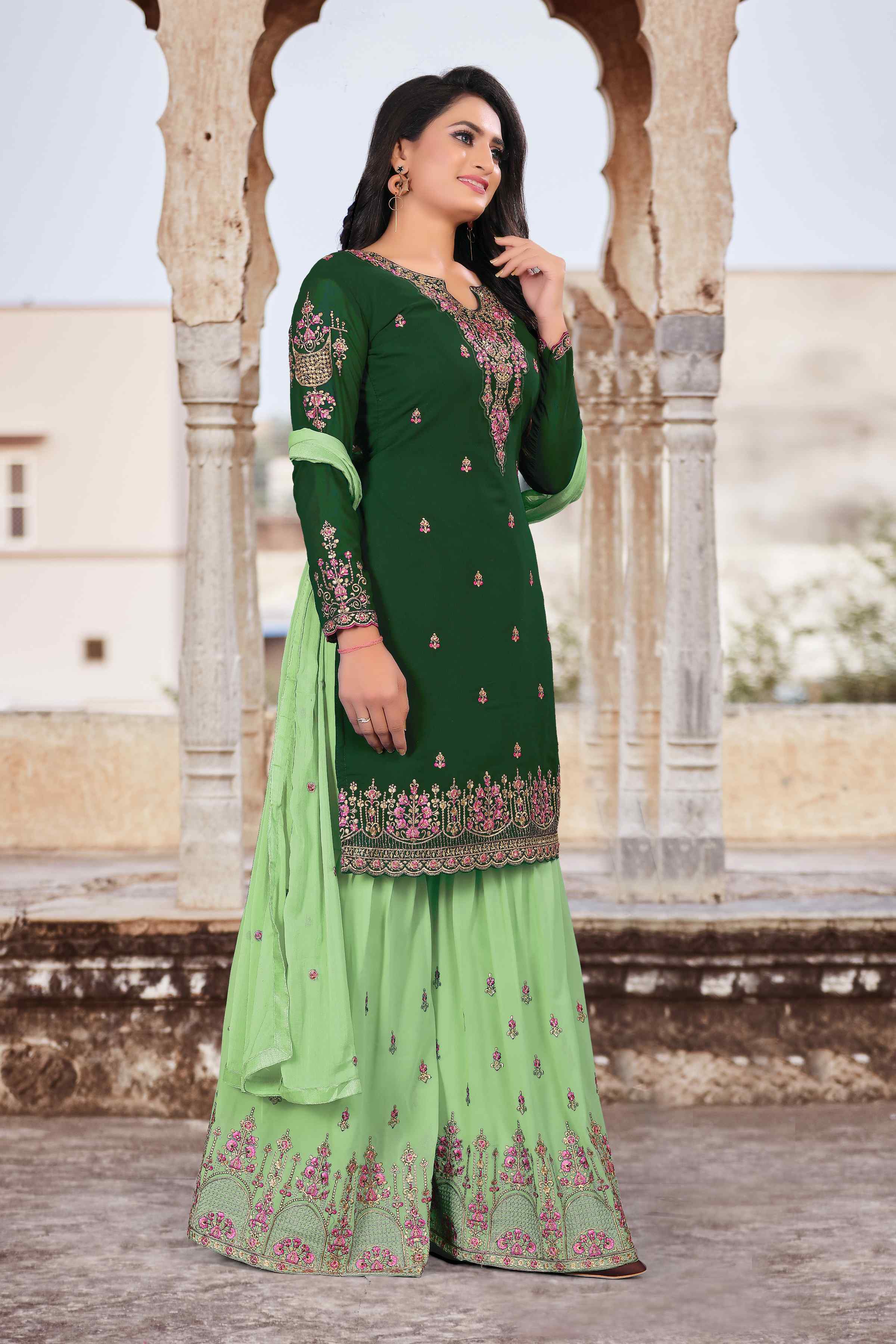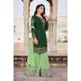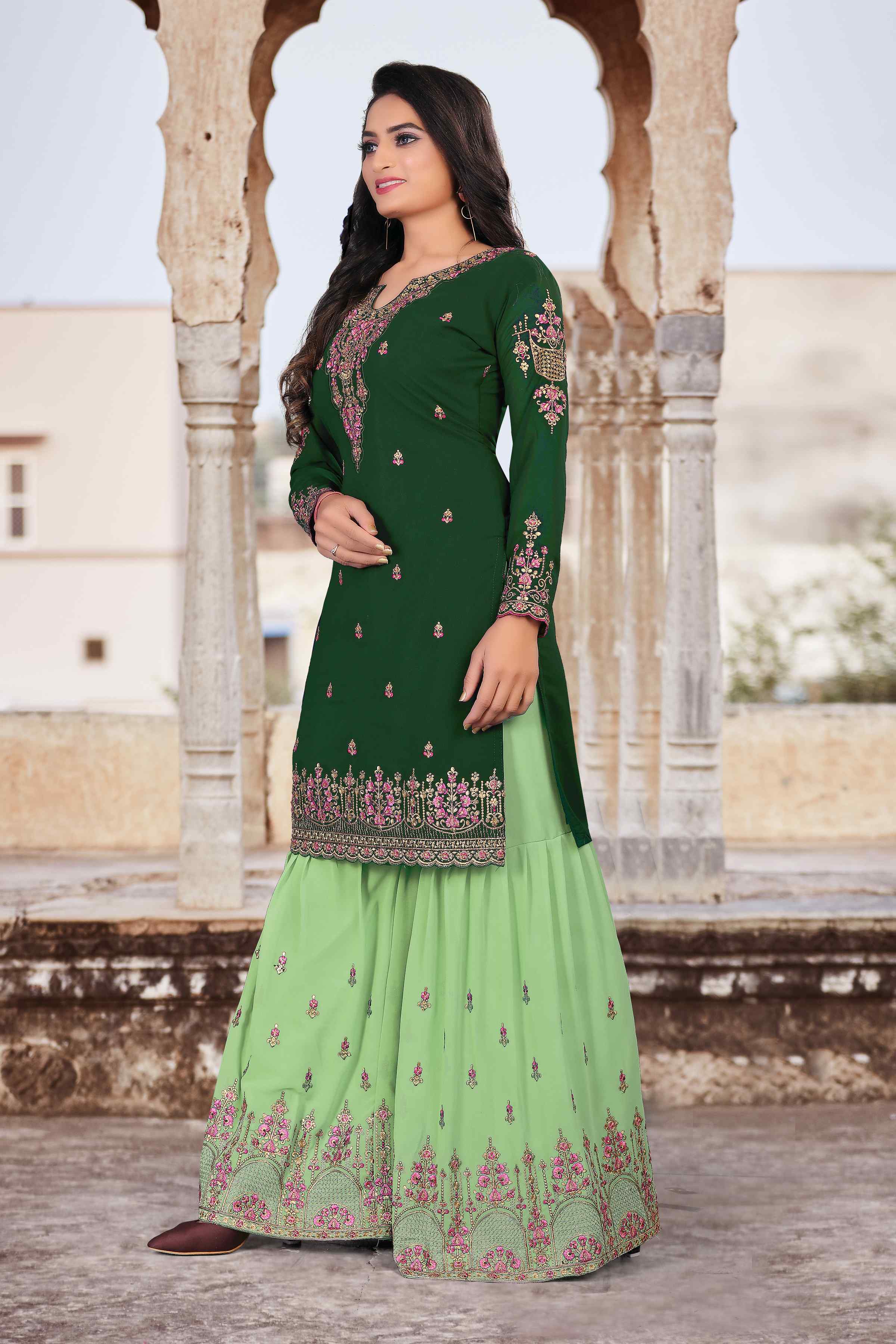HomeFashionKurtas & Kurta SetsDesigner Ethnic Suit Set with Dupatta Faux Georgette Fabric Thread And Zari Embroidered With Diamond Work for Women – Grren Color